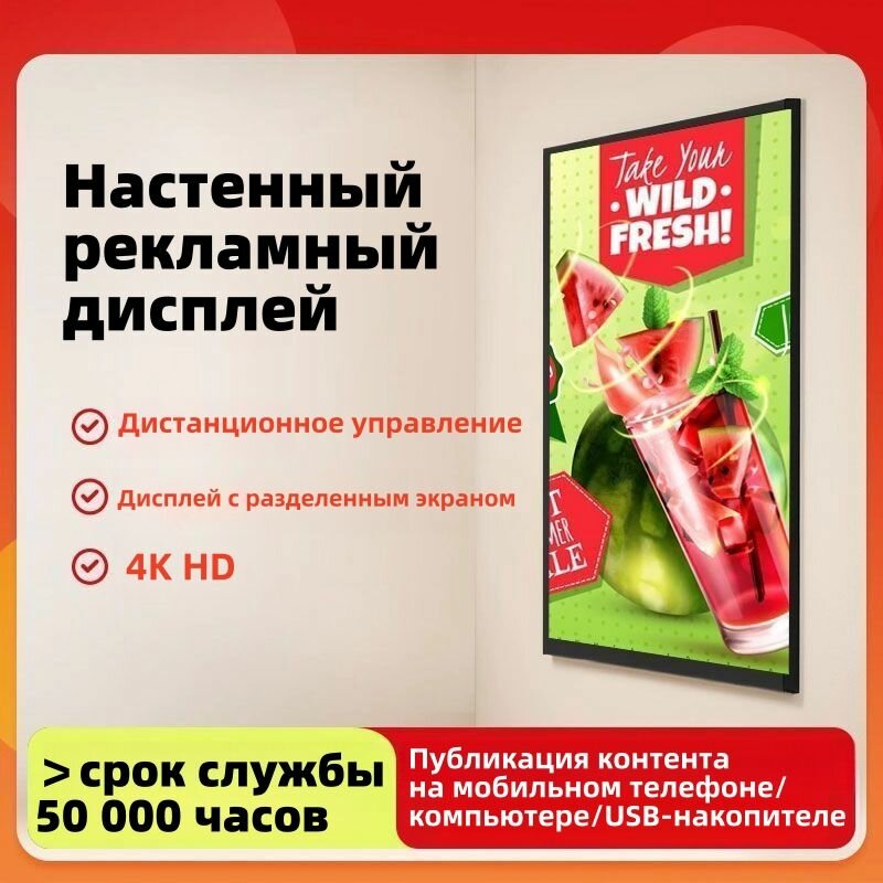 Настенный рекламный экран размером 97*57 см поддерживает онлайн-публикацию контента информация: