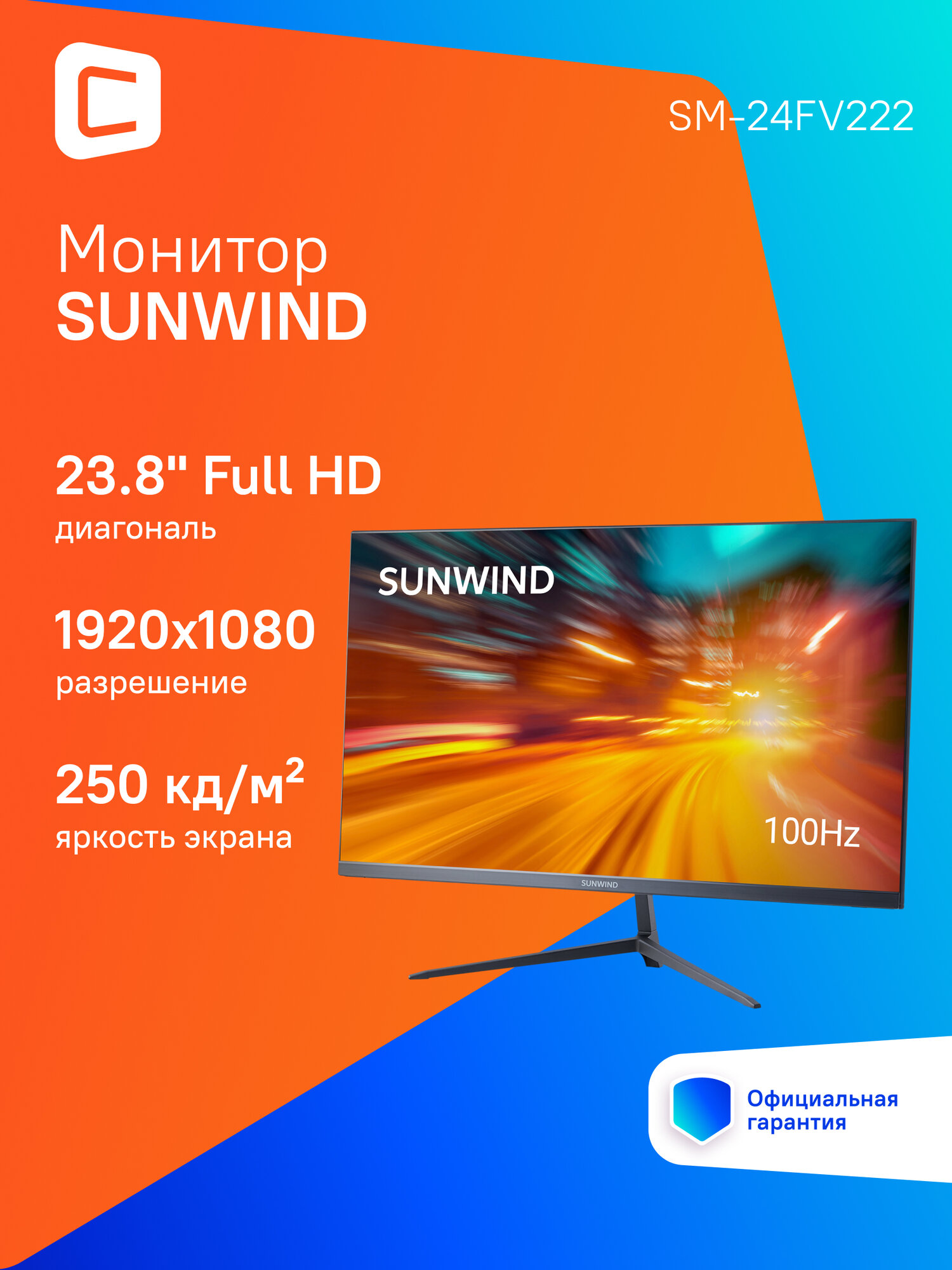 23.8" Монитор SunWind SM-24FV222, 1920x1080, VA, 100Гц, 1хHDMI, черный [sm24vb01] информация: