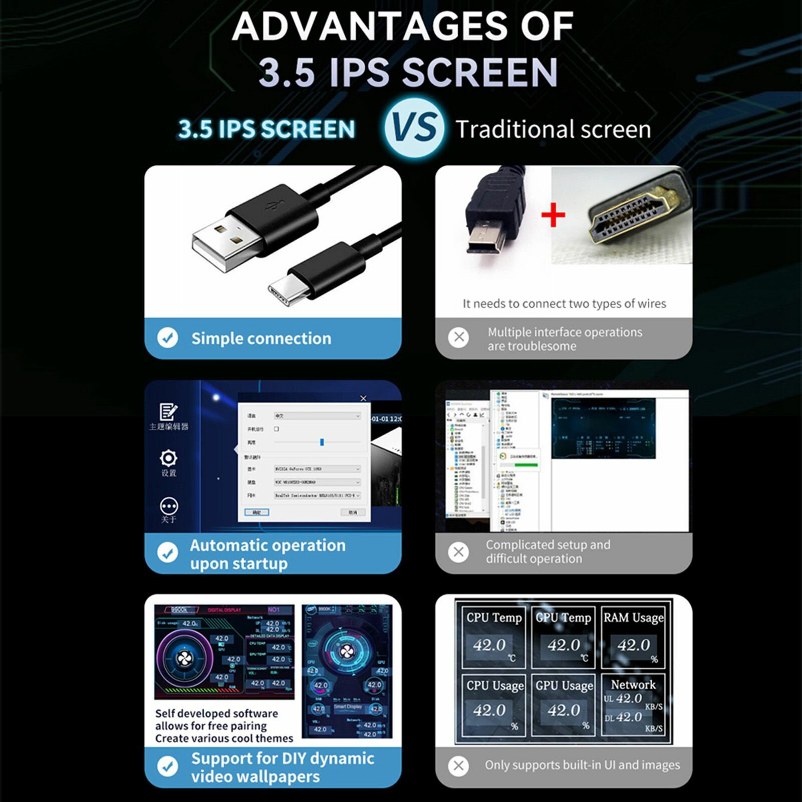 3,5-дюймовый IPS-дисплей CPU GPU дополнительный экран ABS компьютерный корпус DIY редактор тем информация: