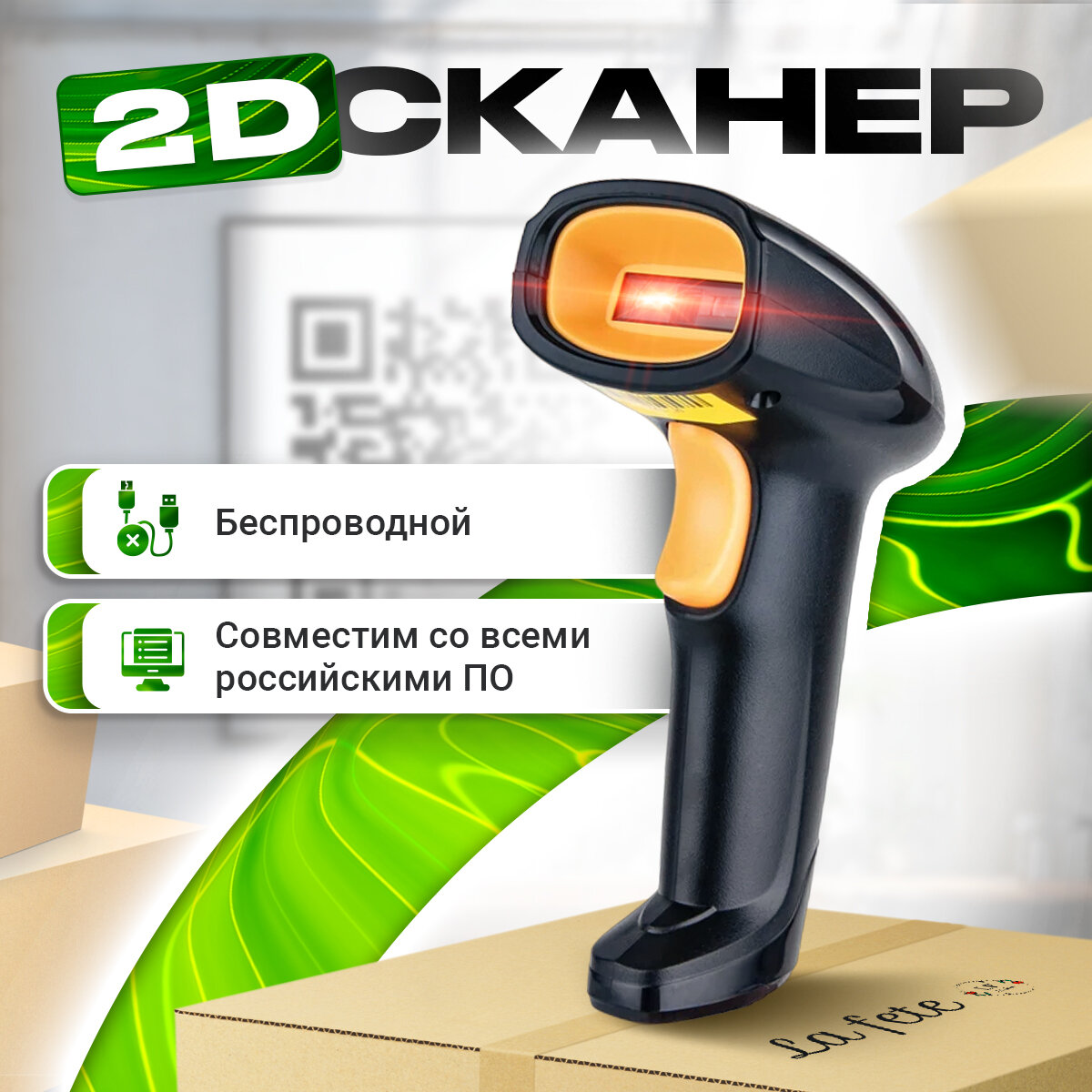 Сканер штрих-кодов, беспроводной, для маркировки и ПВЗ, черный/желтый информация: