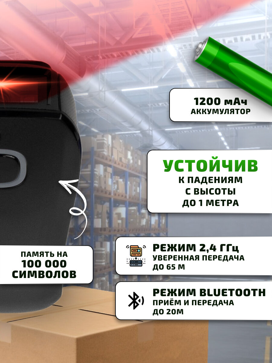 Беспроводной 2D сканер штрихкода для маркировки, ЕГАИС, Честный знак, Атол, Меркурий, идеален для ПВЗ