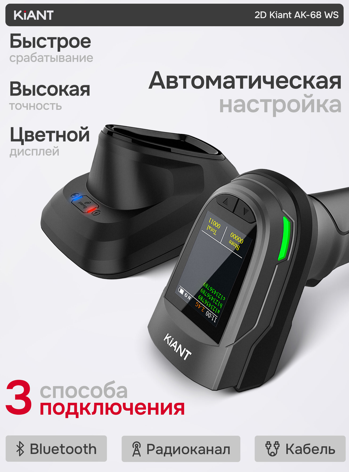 Беспроводной Bluetooth сканер сканер штрихкодов 2D Kiant AK-68WS с экраном информация: