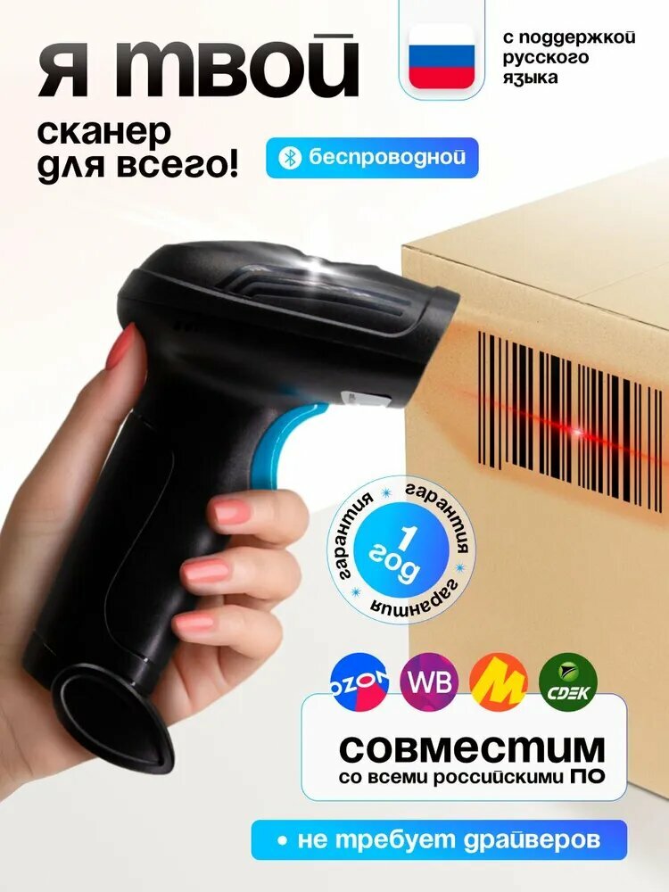 Беспроводной сканер штрихкода 2D, для ПВЗ для маркировки, ЕГАИС, Честный знак, Атол, Меркурий. Модель 33M информация: