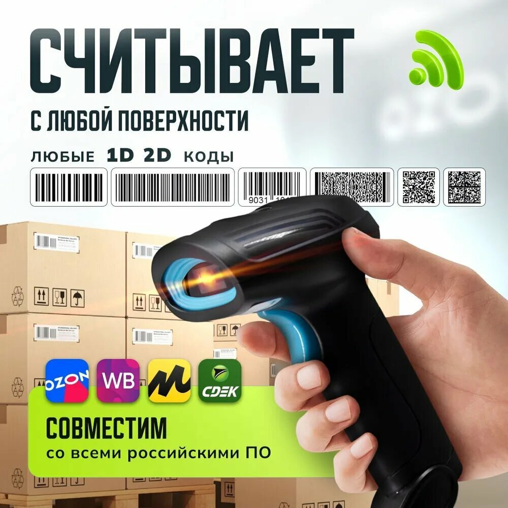Беспроводной 2D сканер штрихкода для маркировки, ЕГАИС, Честный знак, Атол, Меркурий, идеален для ПВЗ