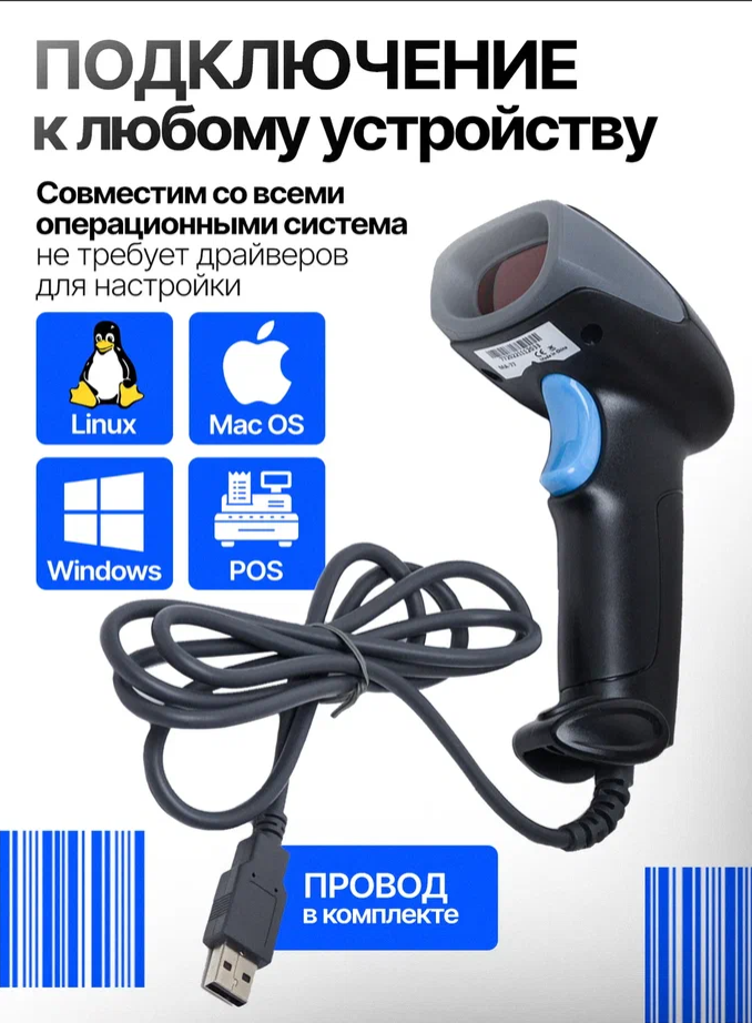 Отзывы на Проводной 1D сканер штрих кода для линейных штрихкодов, для маркировки, магазина, Меркурий считыватель Qr кодов
