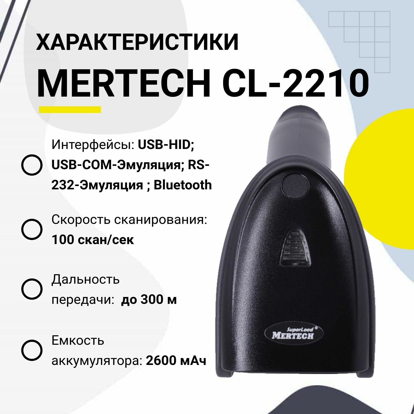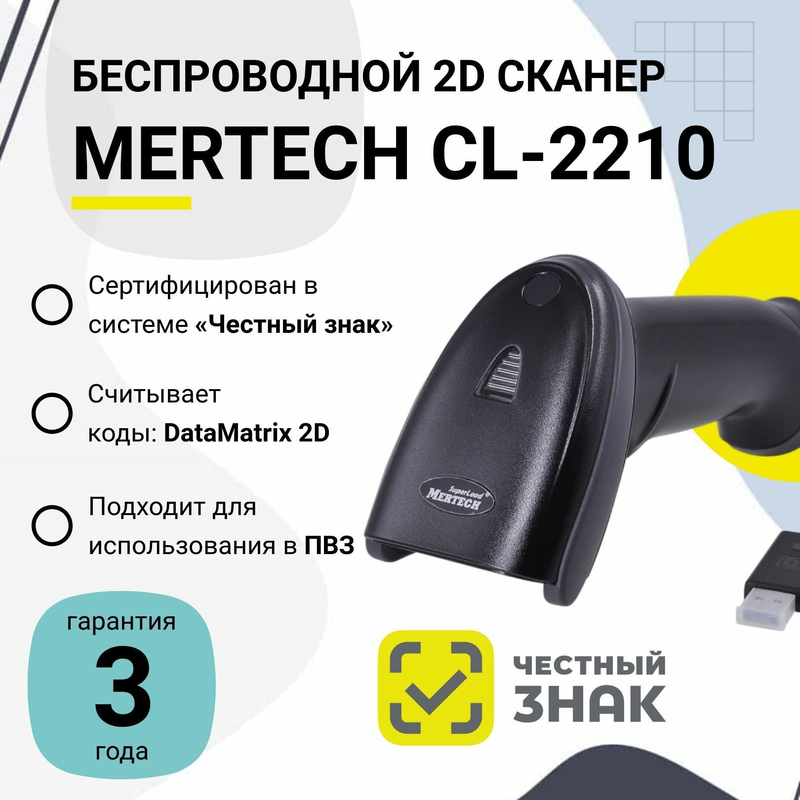 10 цен на Беспроводной сканер штрих-кода Mertech CL-2210 BLE Dongle P2D (2D, черный, USB, Bluetooth, без подставки Cradle)