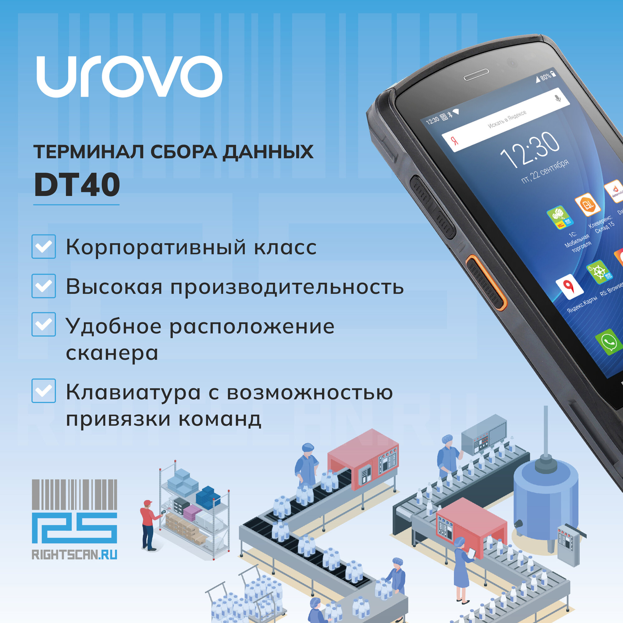Терминал сбора данных (ТСД) UROVO DT40, 3/32 ГБ, Android 11, 2D сканер информация: