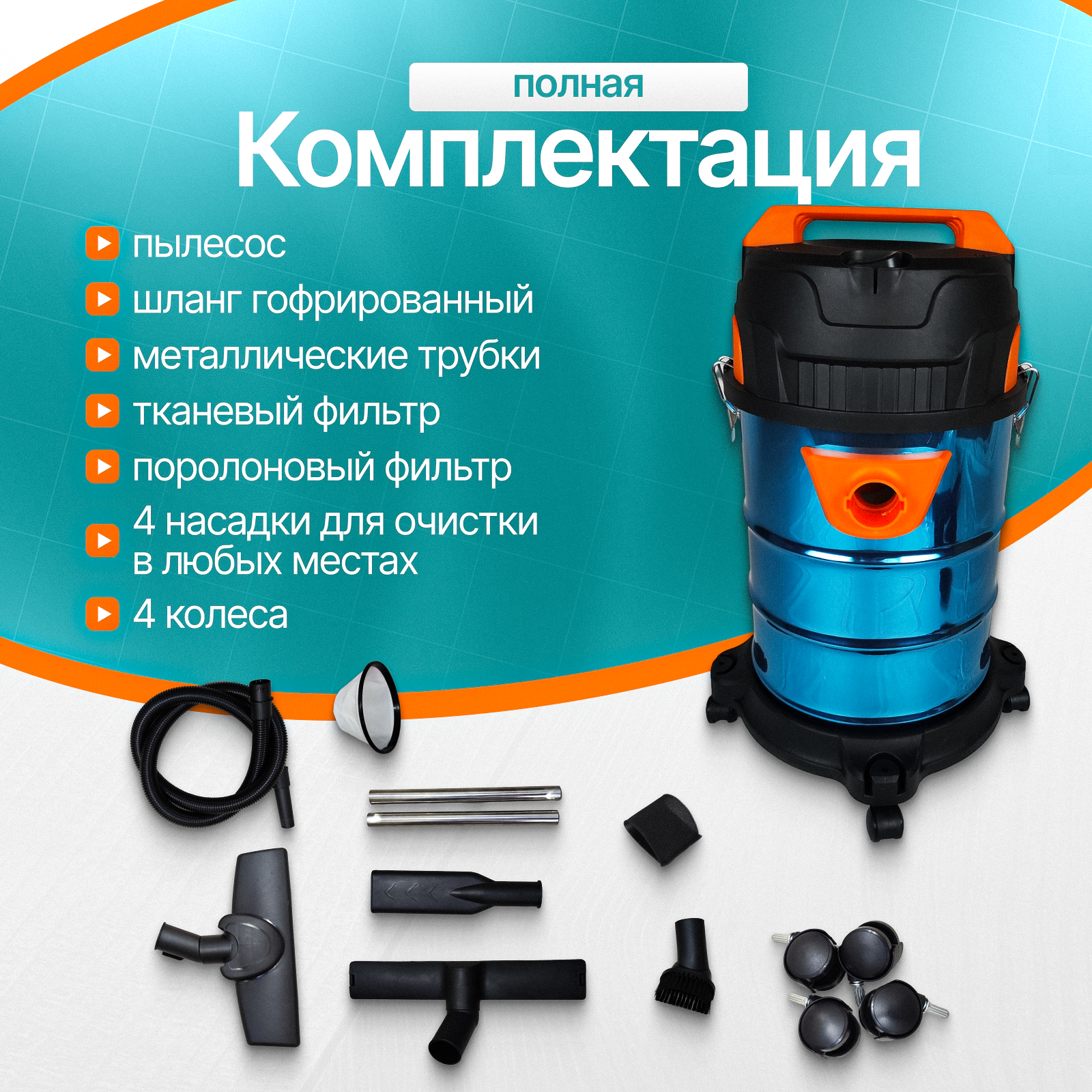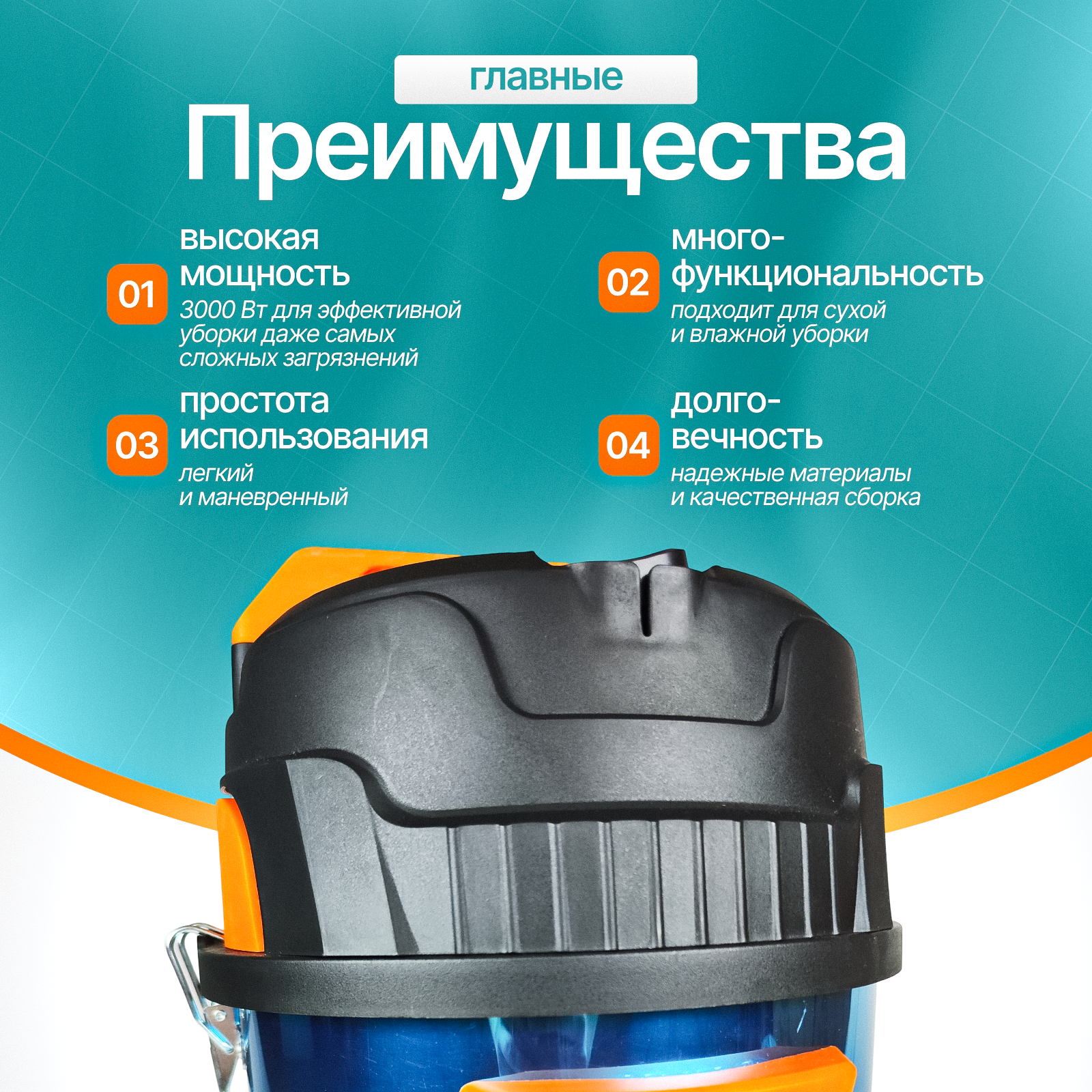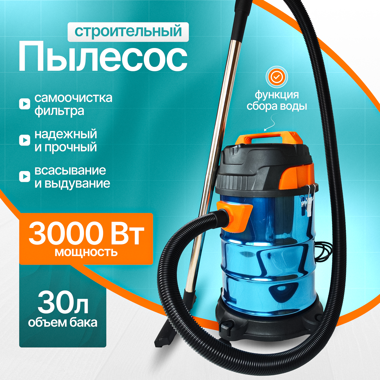 10 цен на Строительный пылесос Cleanway 3000 Вт, объëм бака 30л, система самоочистки