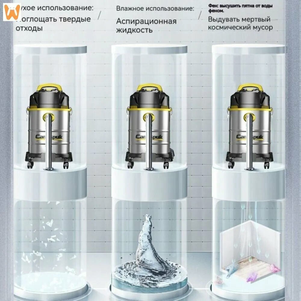 10 цен на Строительный пылесос CANESPUK N620, желтый, 25л, мощность 1800Вт, 500Вт всасывания