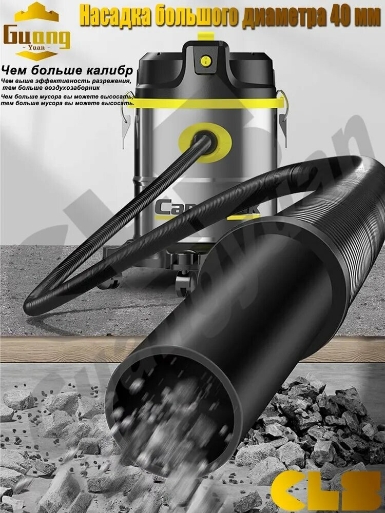 Строительный пылесос, 20л, 2000Вт, сухая/влажная уборка, черный матовый информация:
