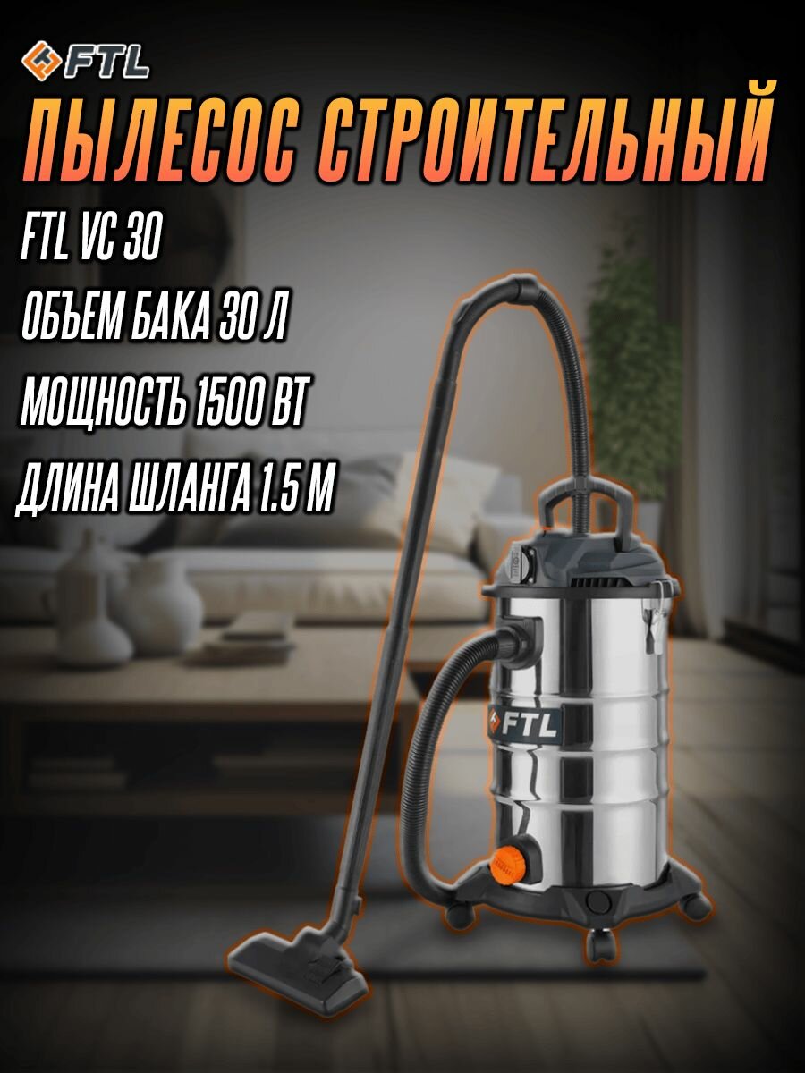 Пылесос FTL VC30 (1500Вт, 30л, 1800л, мин,) информация: