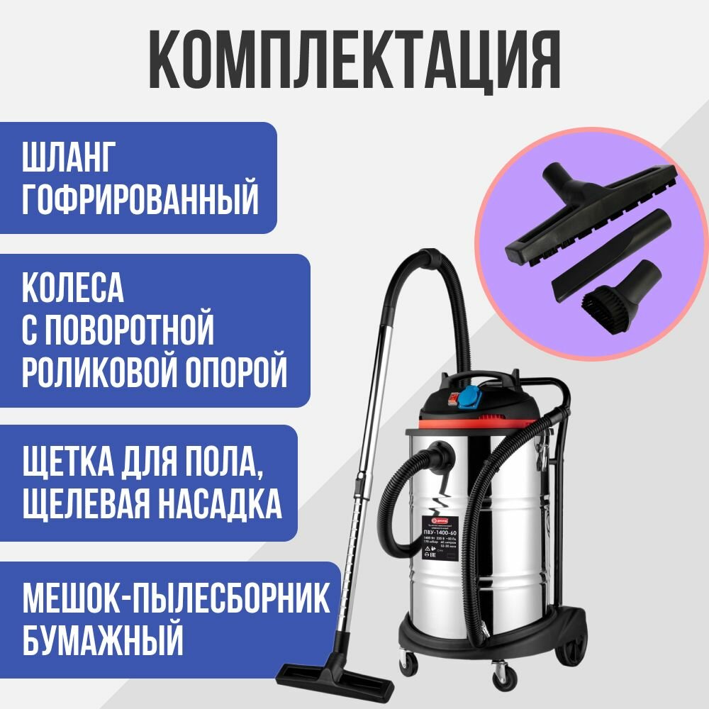 Пылесос строительный универсальный ПВУ-1400-60 "диолд"/1400Вт информация: