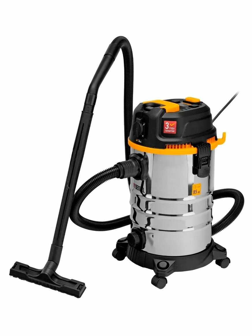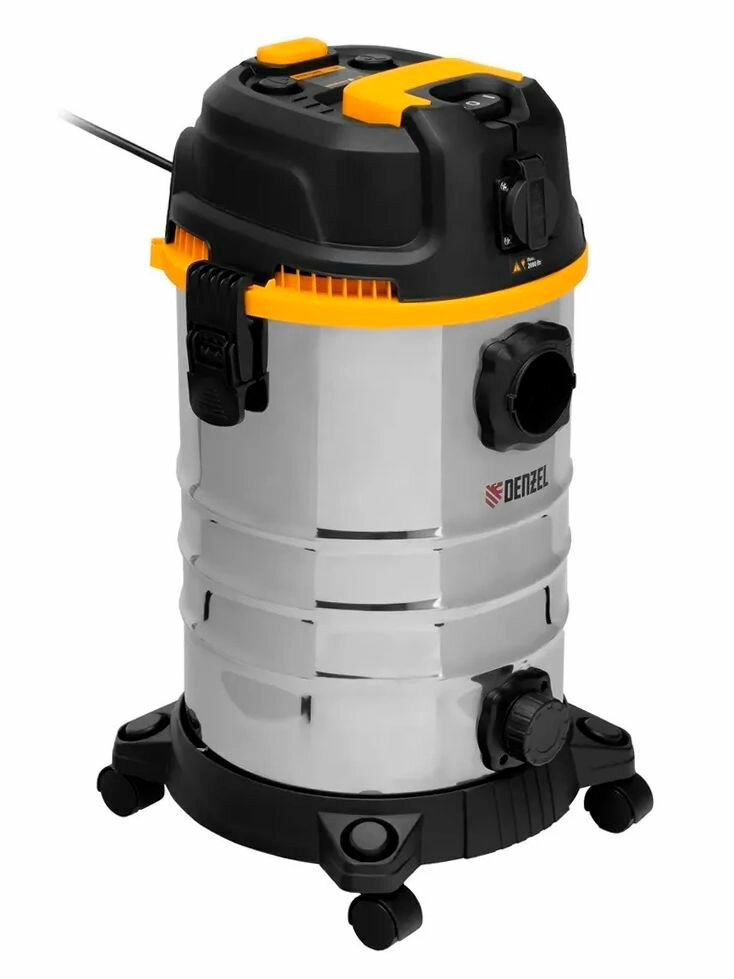 10 цен на Пылесос строительный DENZEL RVC30, 1400 Вт мощность и 30 л объем бака, встроенная электророзетка, сбора воды, выдув