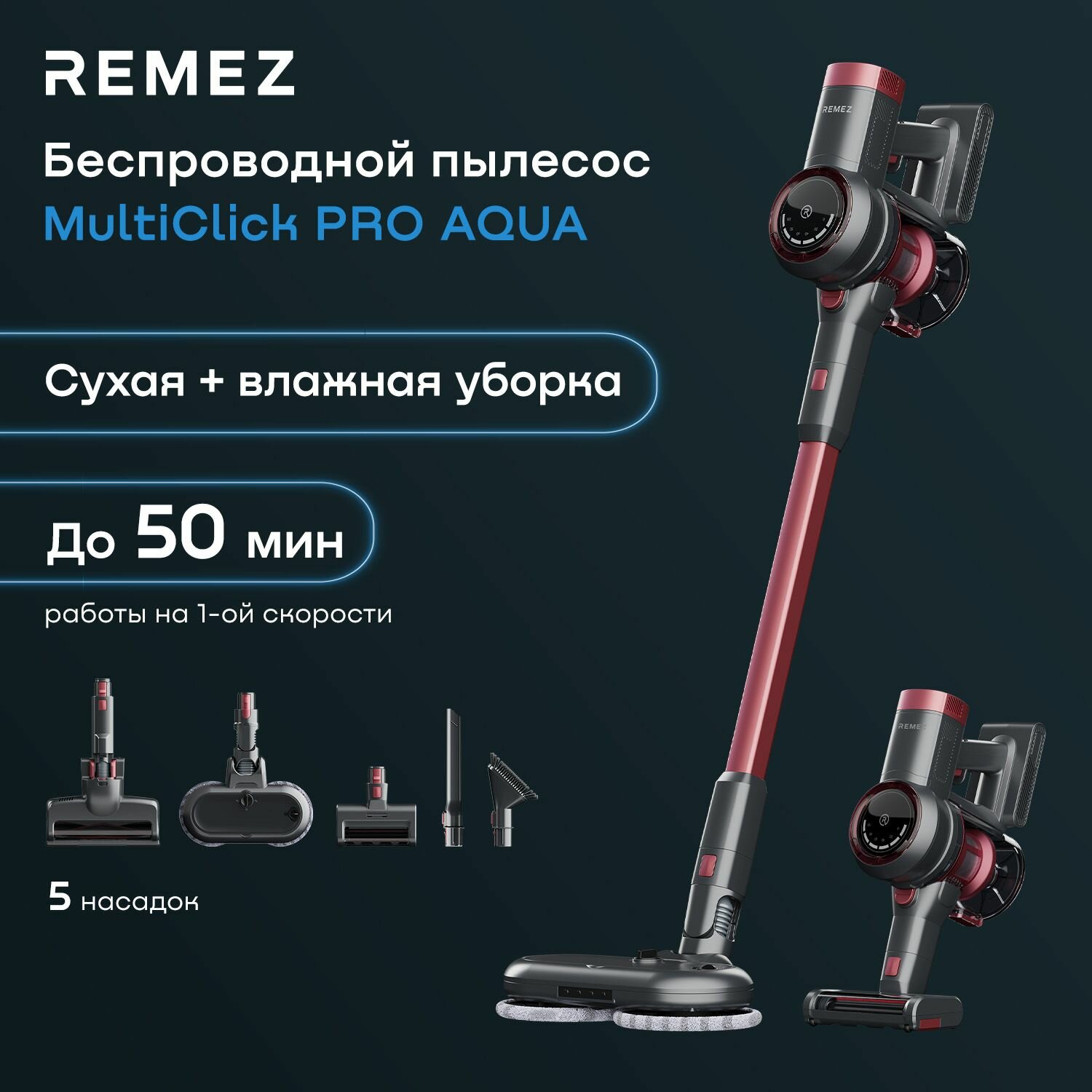 10 цен на Беспроводной вертикальный пылесос для сухой и влажной уборки REMEZ RMVС-504 MultiClick Pro Aqua