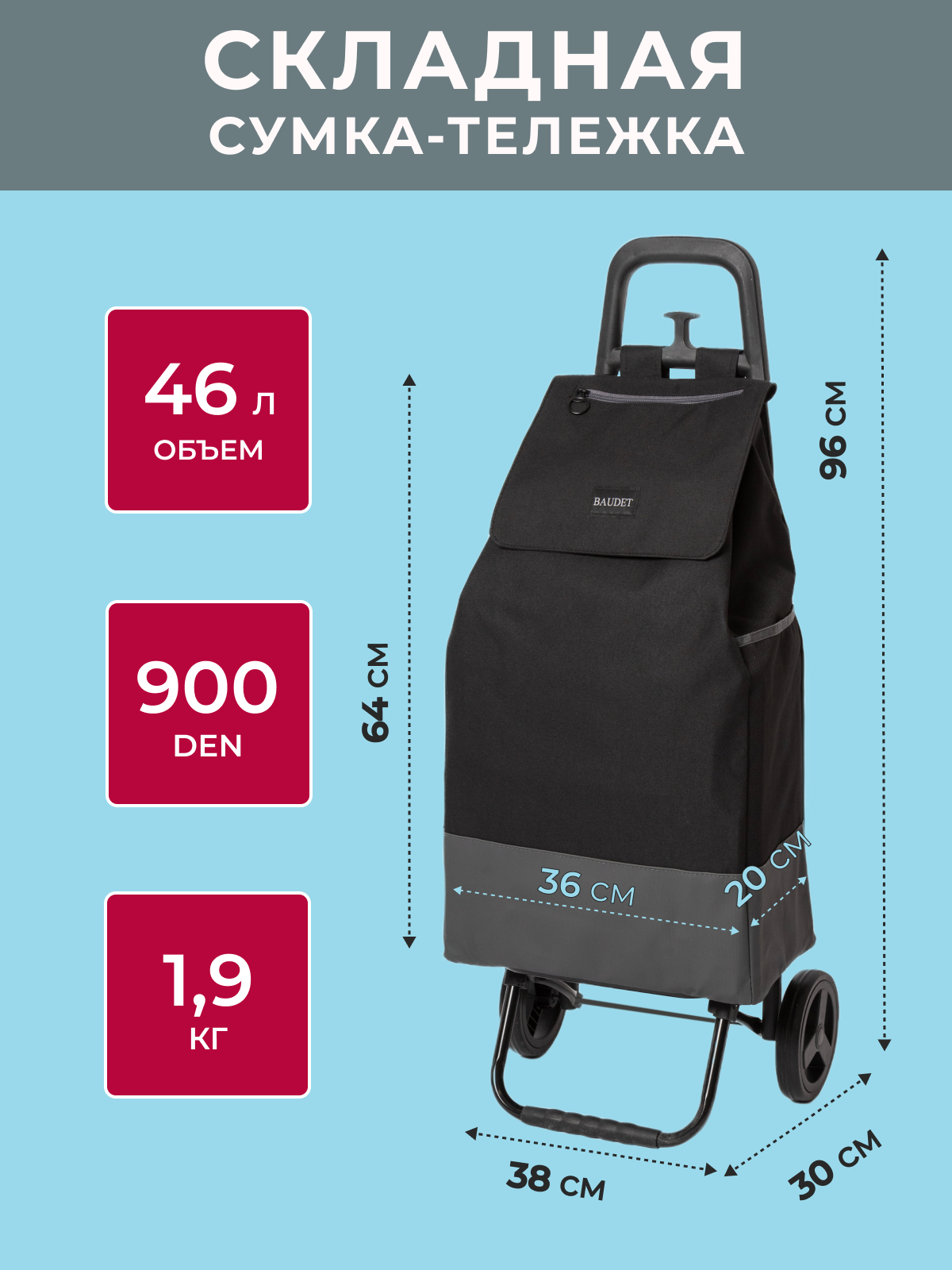 Сумка-тележка BAUDET, 46 л, 38х96х30 см, черный/серый информация:
