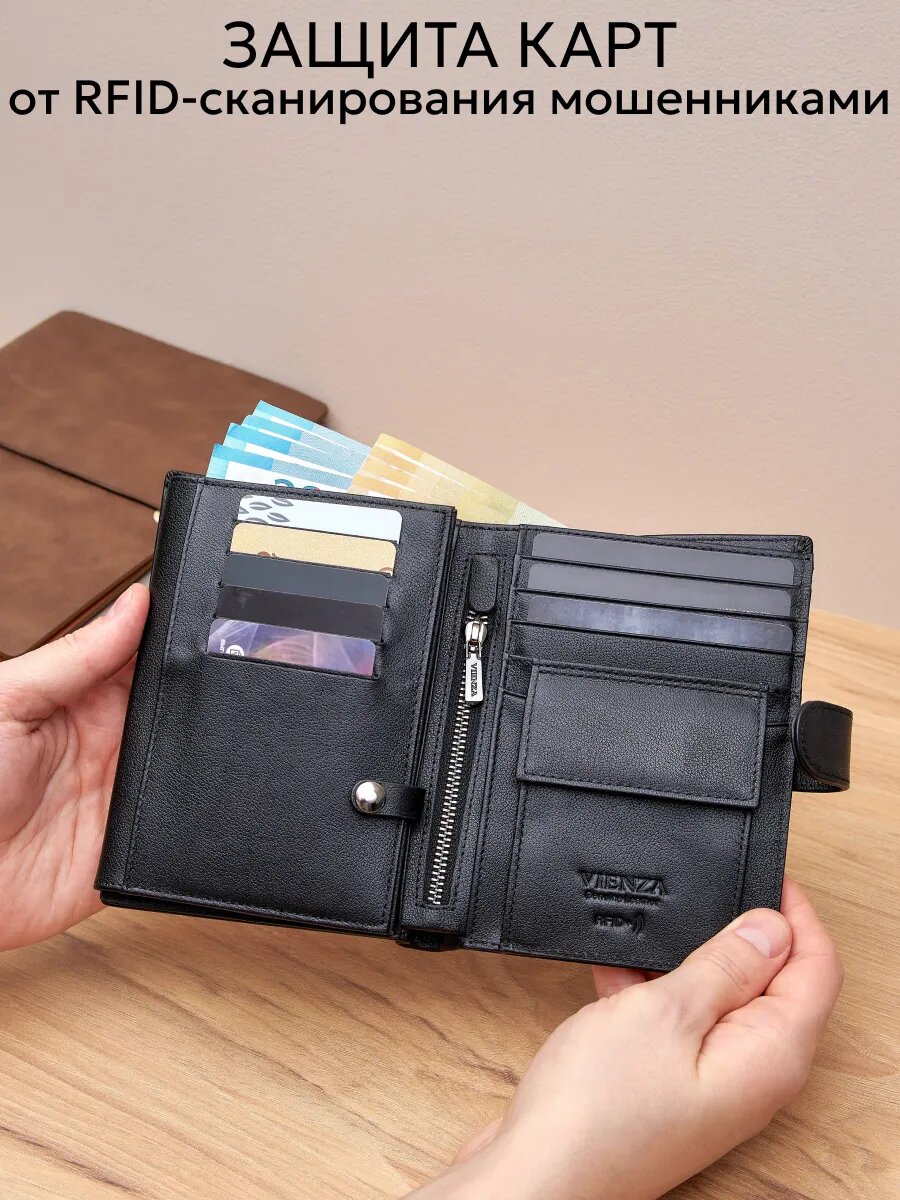 10 цен на Портмоне VIENZA, фактура гладкая, black leather