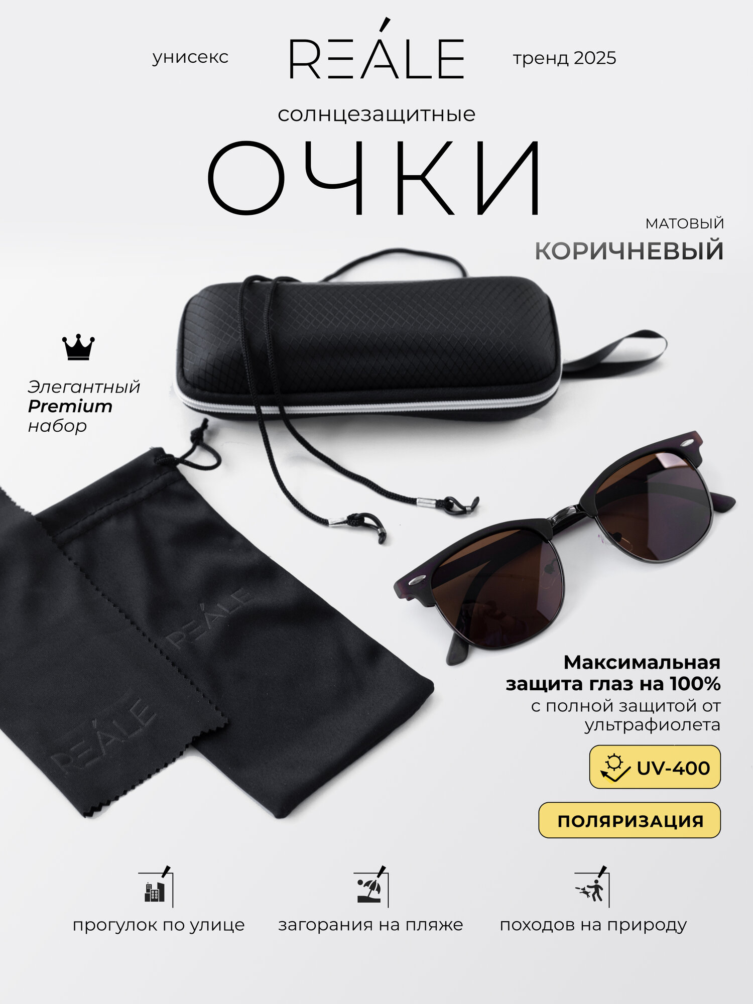0 отзывов, средняя оценка 0. Чтобы купить «Солнцезащитные очки REALE, коричневый» по лучшей цене мы сканируем авито, алиэкспресс, маркет, озон, савеловский, плеер, горбушку, беру, официальные сайты и находим минимальную. Администрация не несет ответсвенность актуальность цен на Солнцезащитные очки REALE, коричневый, более подробно узнавайте на сайте магазина.