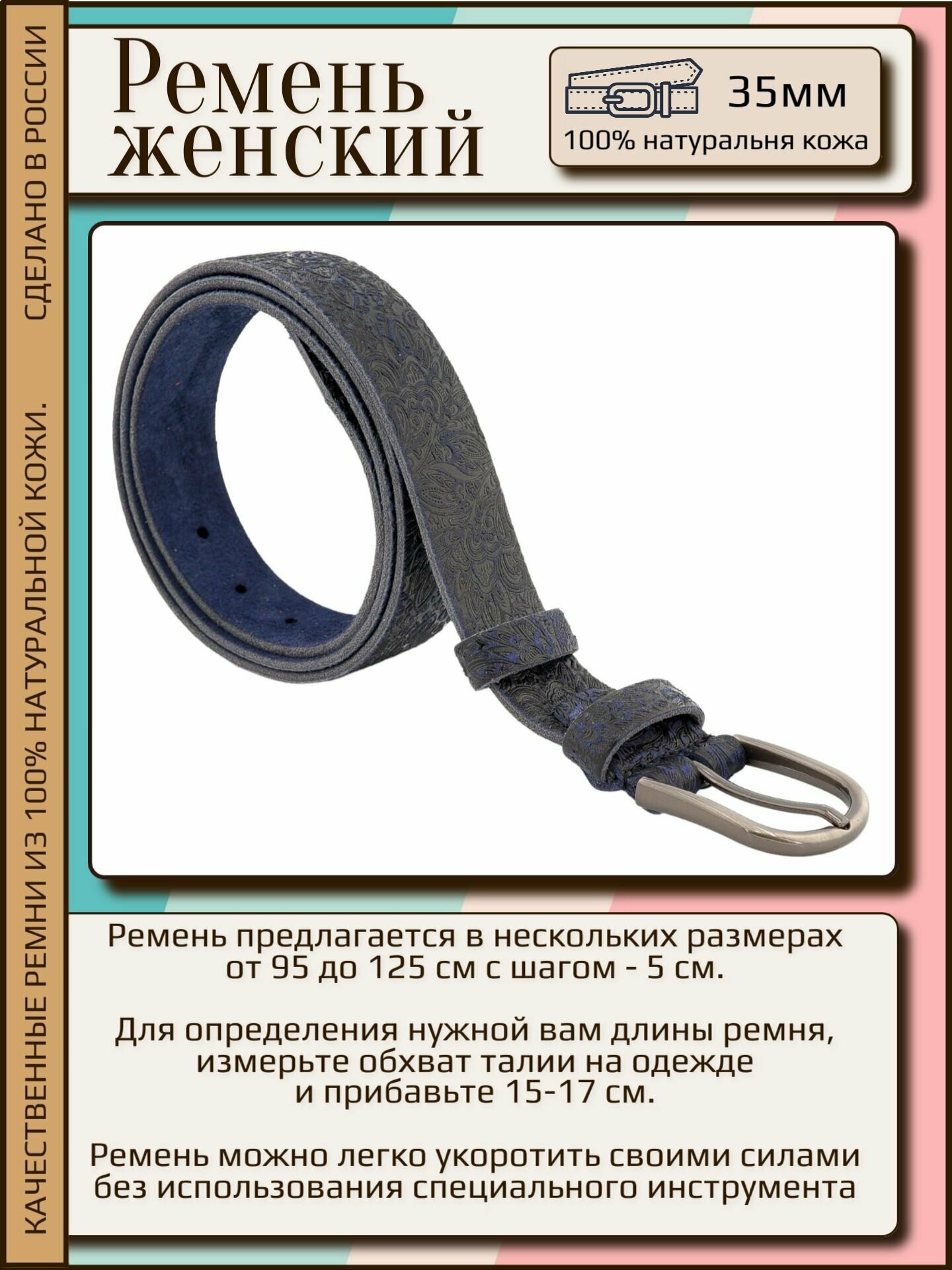 Ремень AksyBelt для женщин, размер 95, синий роза 1 595 ₽