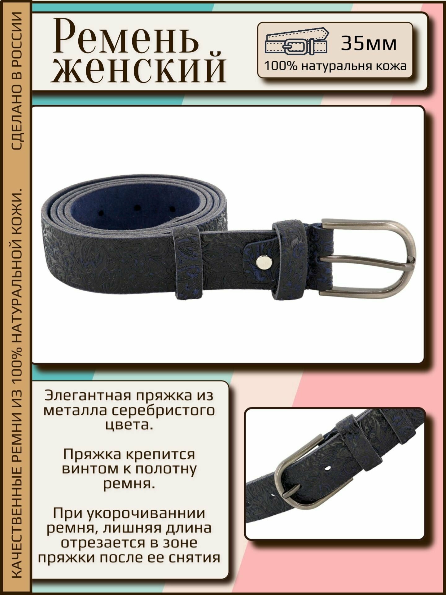 Ремень AksyBelt для женщин, размер 100, синий роза 1 522 ₽