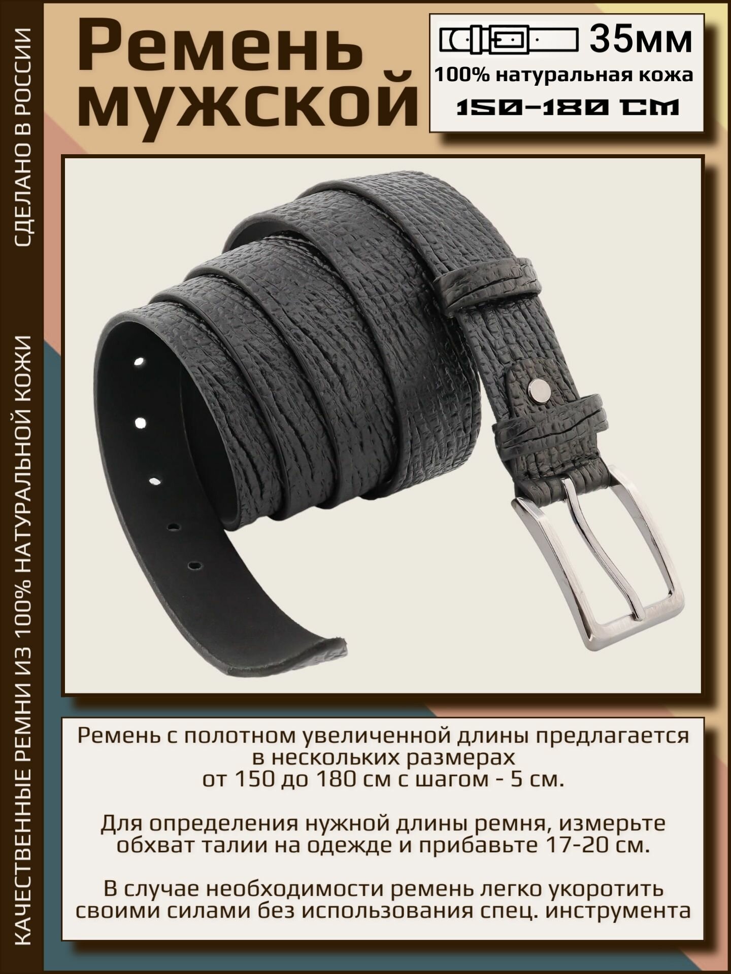 10 цен на Ремень AksyBelt для мужчин, размер 175, черный
