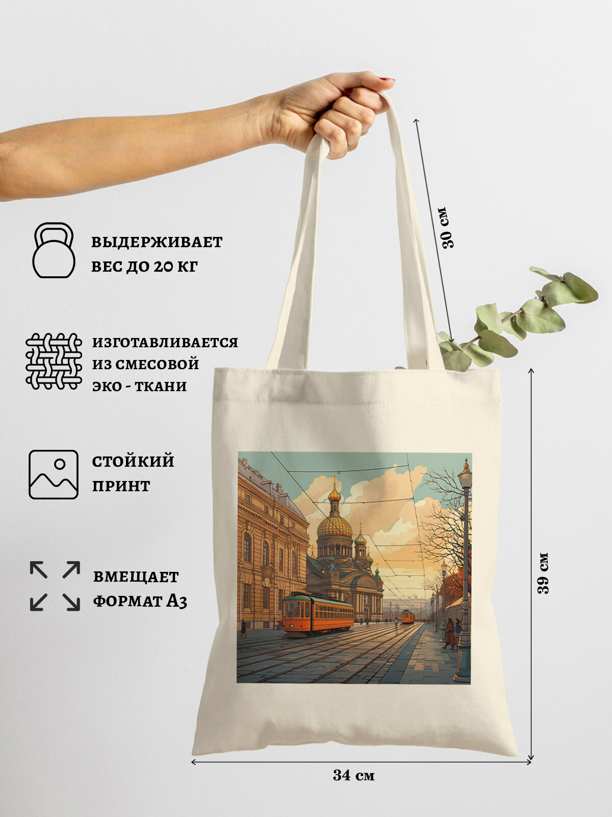10 цен на Сумка шоппер Gerasim шоппер с принтом "Утро. Трамвай", шопер авоська холщовая с рисунком в подарок, бежевый/коричневый/голубой