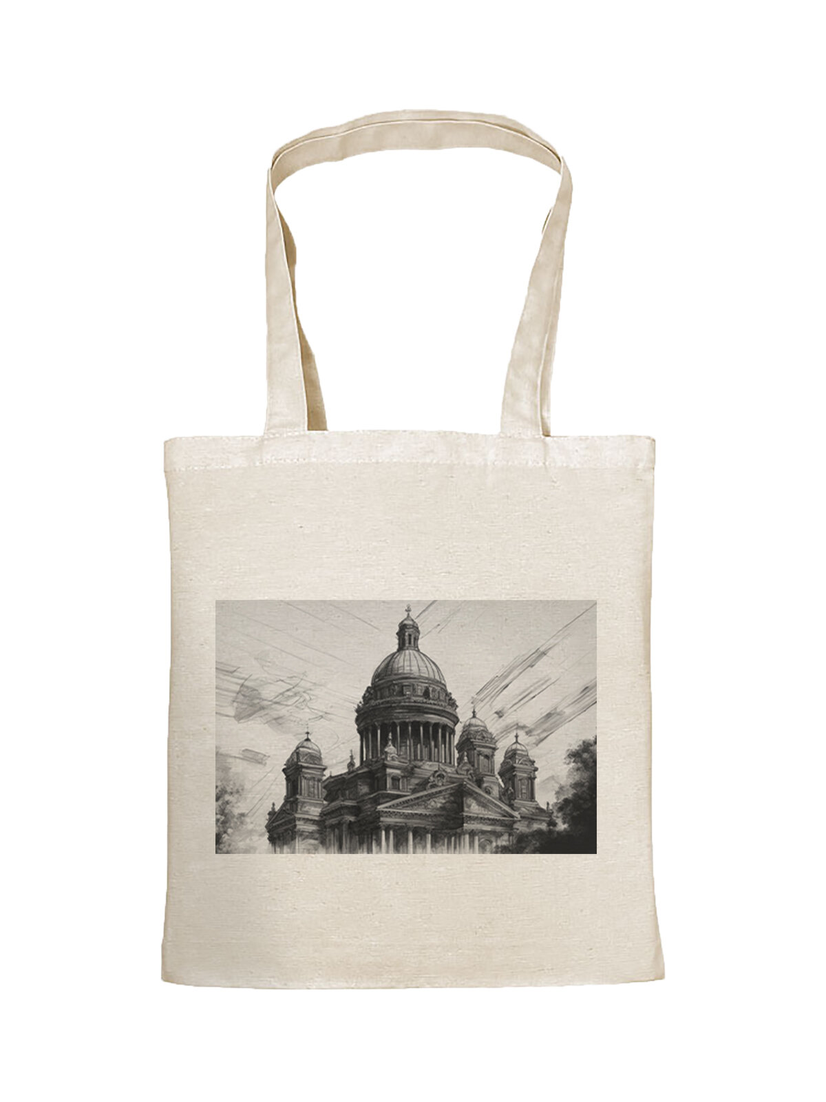 Сумка шоппер Gerasim шоппер с принтом "Исаакиевский собор ", шопер авоська холщовая с рисунком в подарок, серый, бежевый, черный информация:
