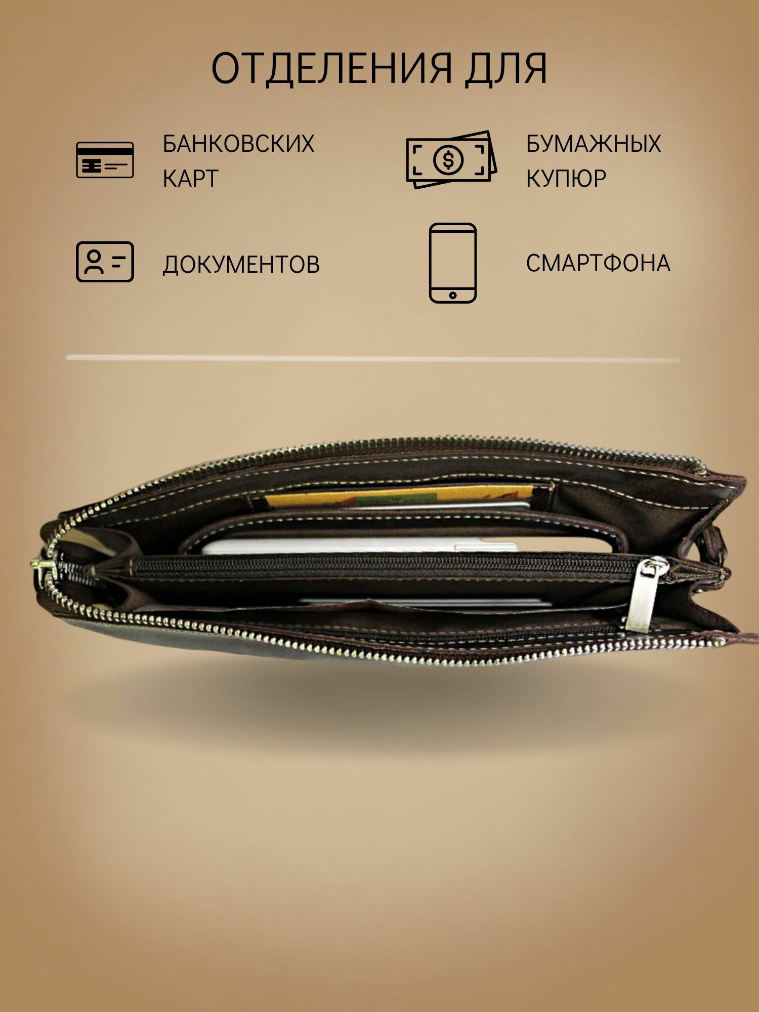 Сумка клатч Apache, фактура матовая, коричневый информация: