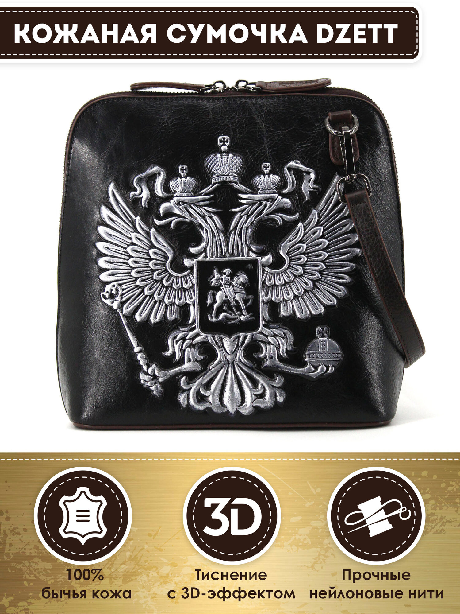 Сумка кросс-боди Dzett, фактура тиснение, черный, золотой, коричневый, желтый 5 599 ₽