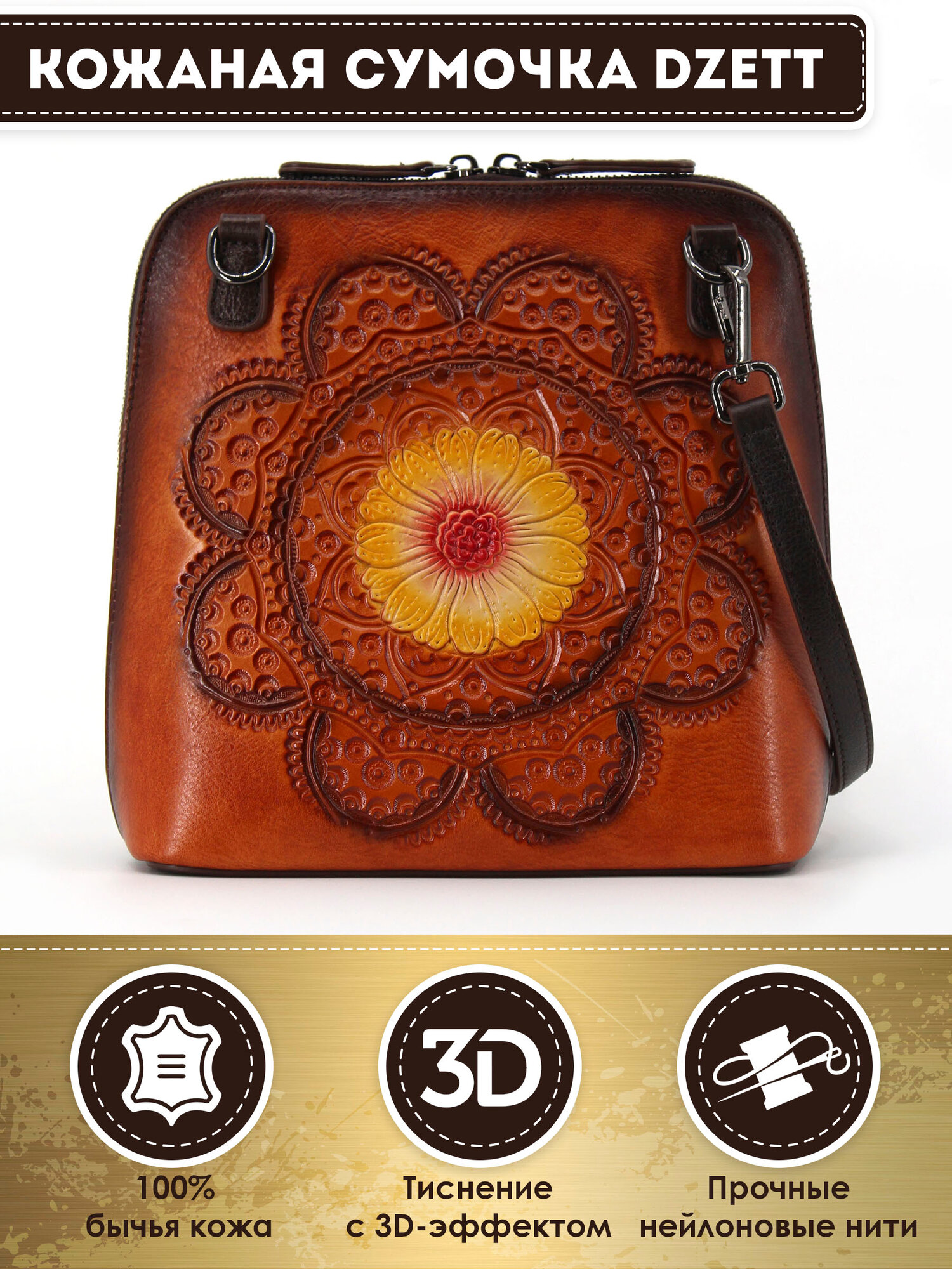 Сумка кросс-боди Dzett, фактура тиснение, коричневый, красный, желтый 6 599 ₽