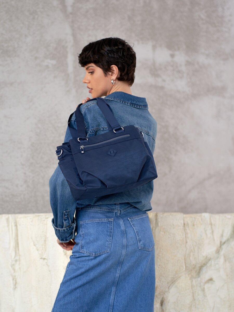 Сумка тоут Henry Backer, фактура гладкая, синий информация: