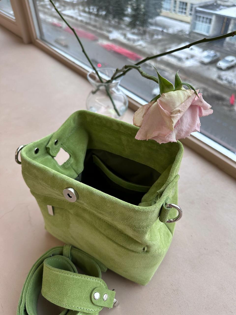 Сумка саквояж Shapely, фактура бархатистая, зелёный информация: