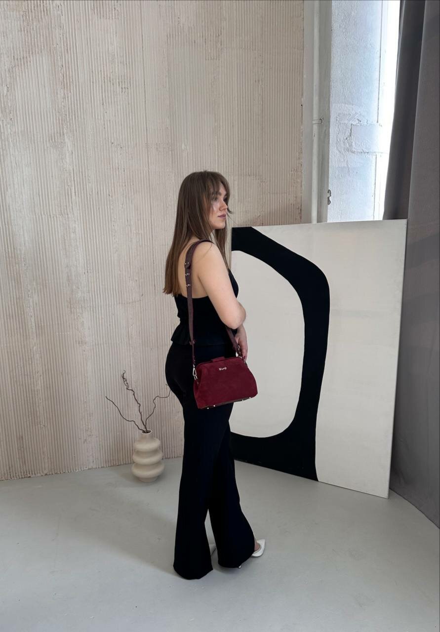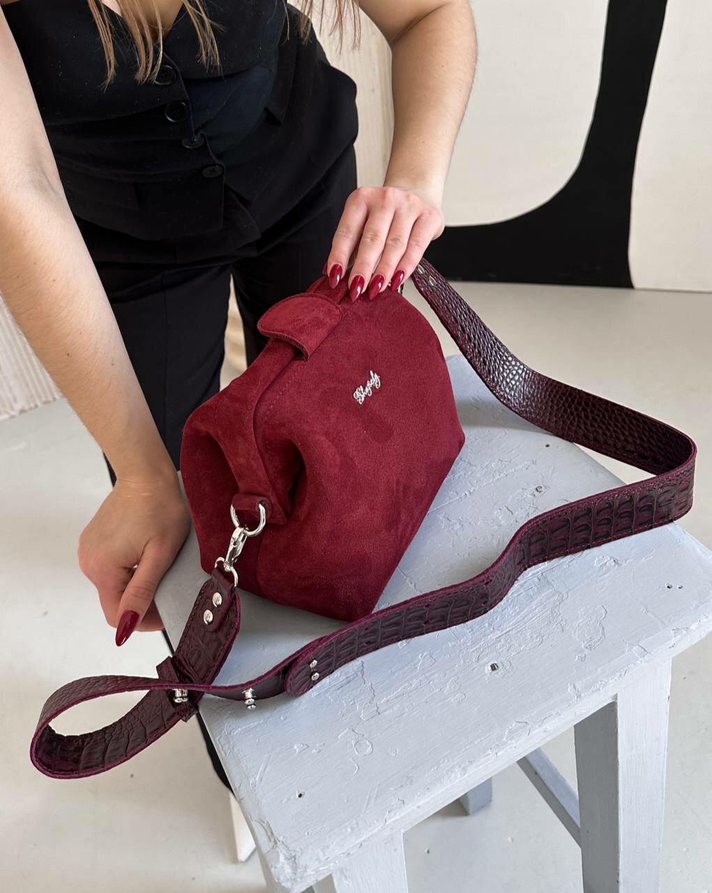Сумка саквояж Shapely, фактура бархатистая, бордо информация: