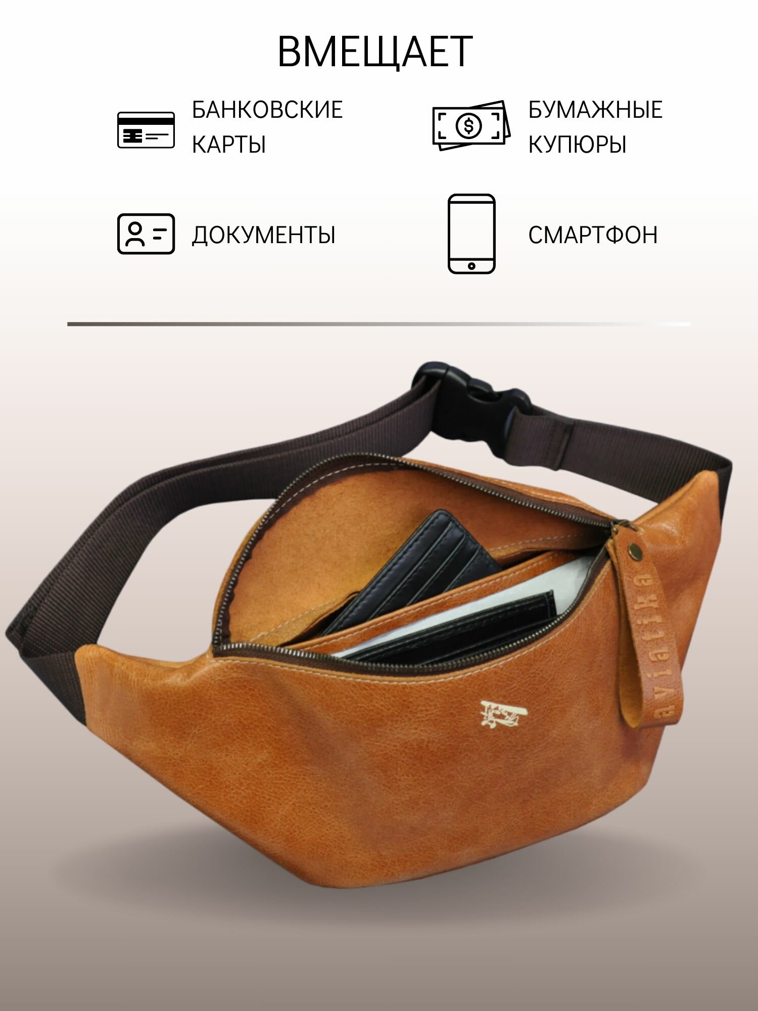 10 цен на Сумка поясная Авиатика, фактура тиснение, рыже-коричневый