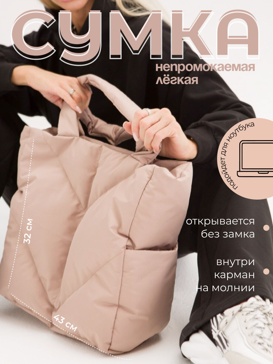 10 цен на Сумка шоппер cattacode store, фактура стеганая, бежевый