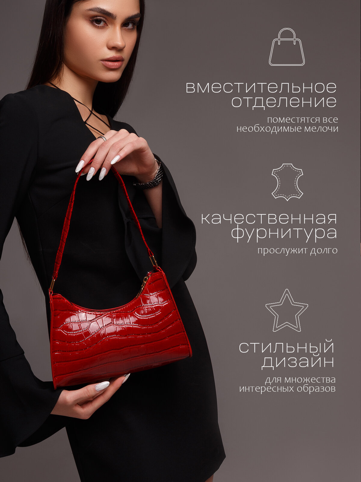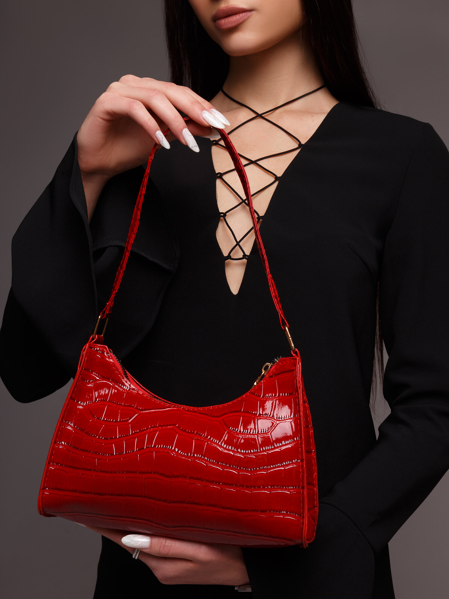 10 цен на Сумка багет Akuna, фактура под рептилию, красный