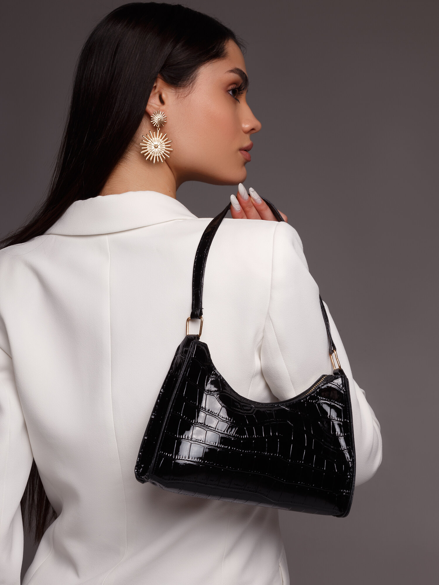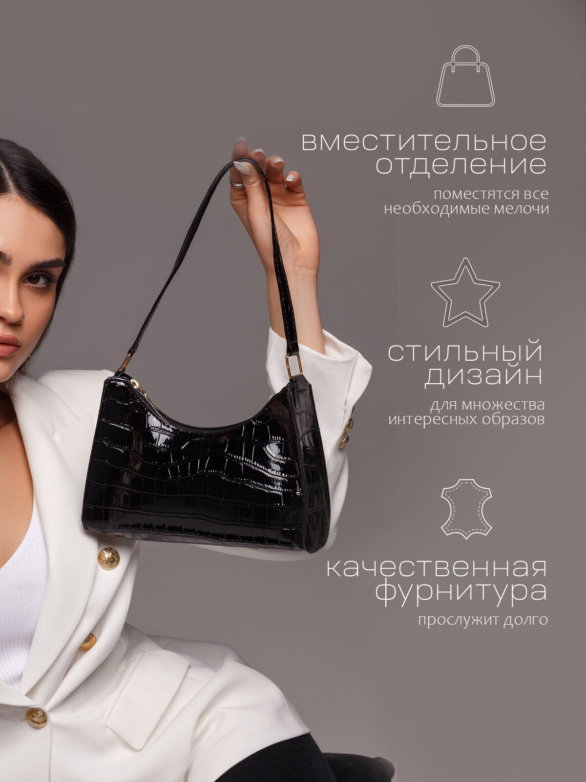 10 цен на Сумка багет Akuna, фактура под рептилию, черный