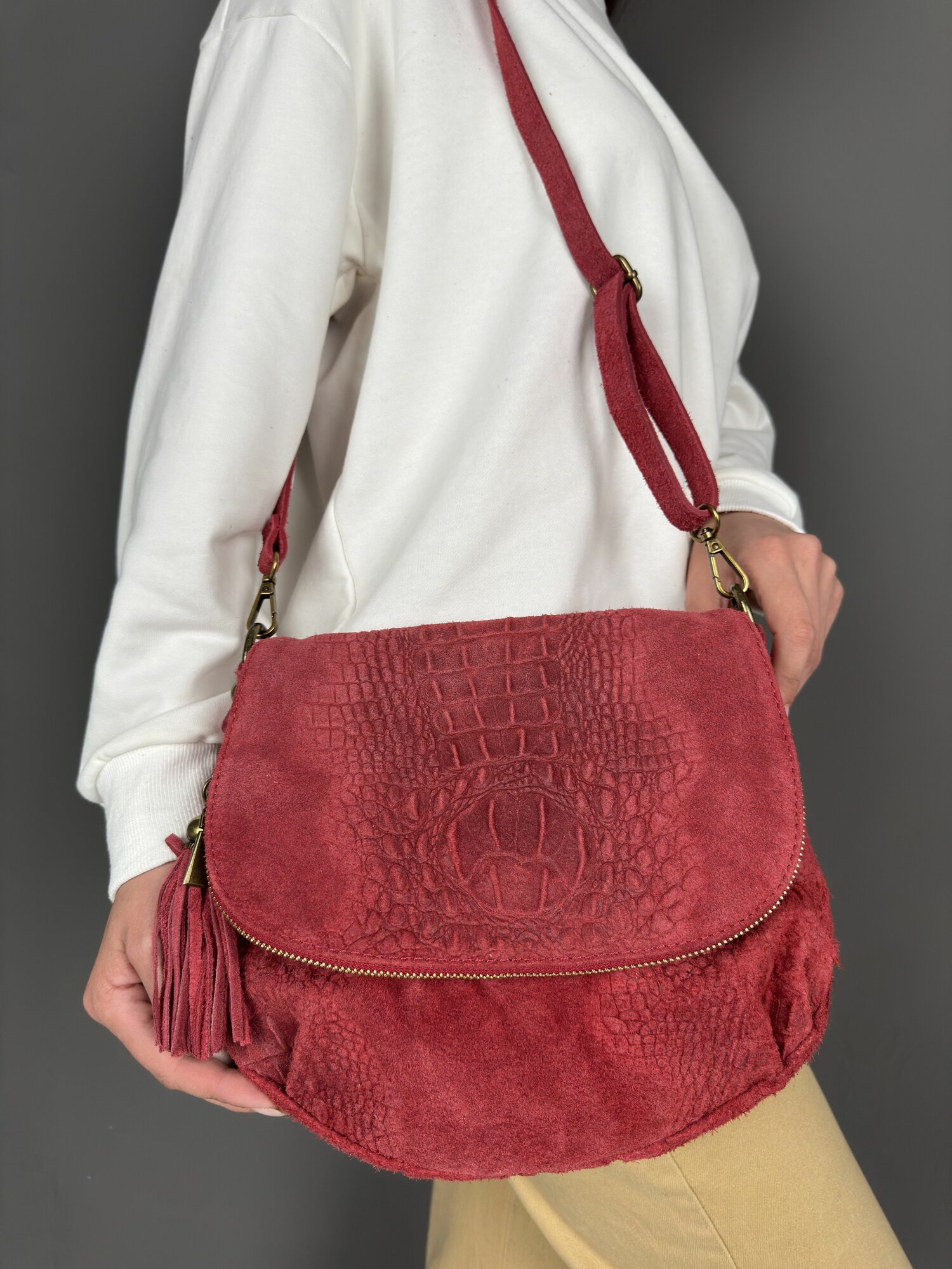 Сумка кросс-боди Sefaro, фактура под рептилию, бордовый информация: