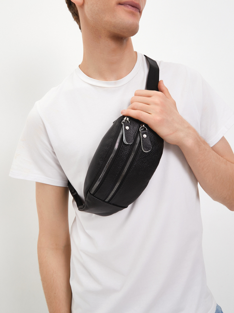 10 цен на Сумка поясная , фактура гладкая, черный 1