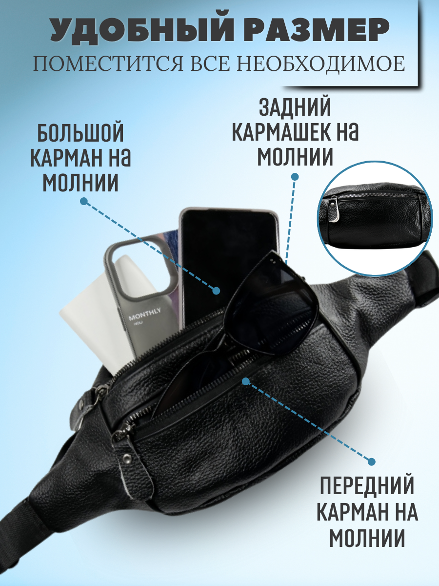 Сумка поясная , фактура гладкая, черный 1 информация: