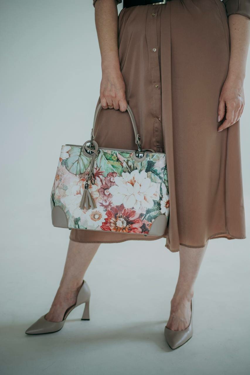 Отзывы на Сумка тоут M&Marie FIORE ESTATE BORSA, фактура зернистая, гладкая, пыльная роза, бежевый, зеленый, мультиколор