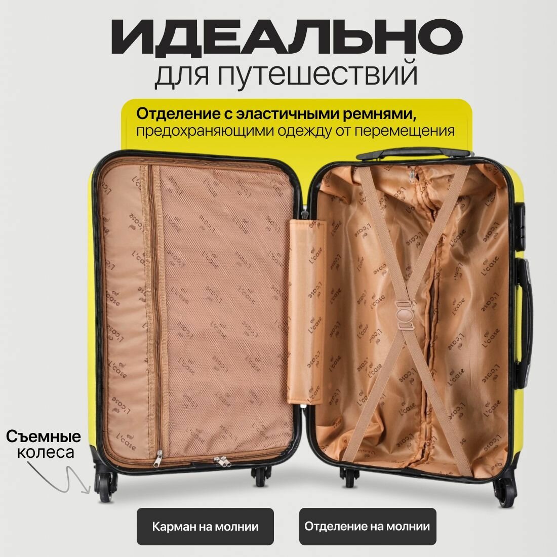 Чемодан L'case, 63 л, размер M, желтый 5 733 ₽