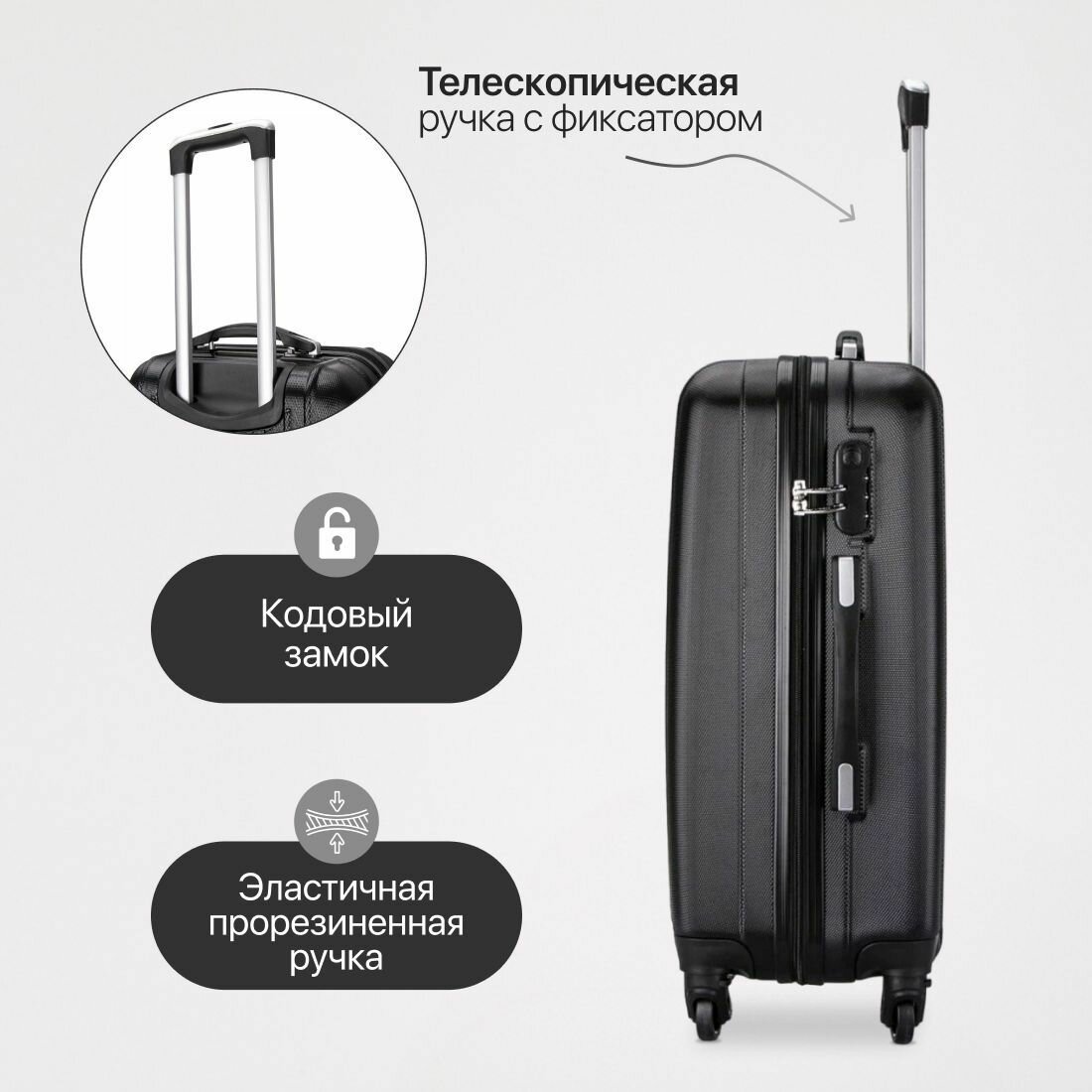 Чемодан L'case, 63 л, размер M, черный 5 733 ₽