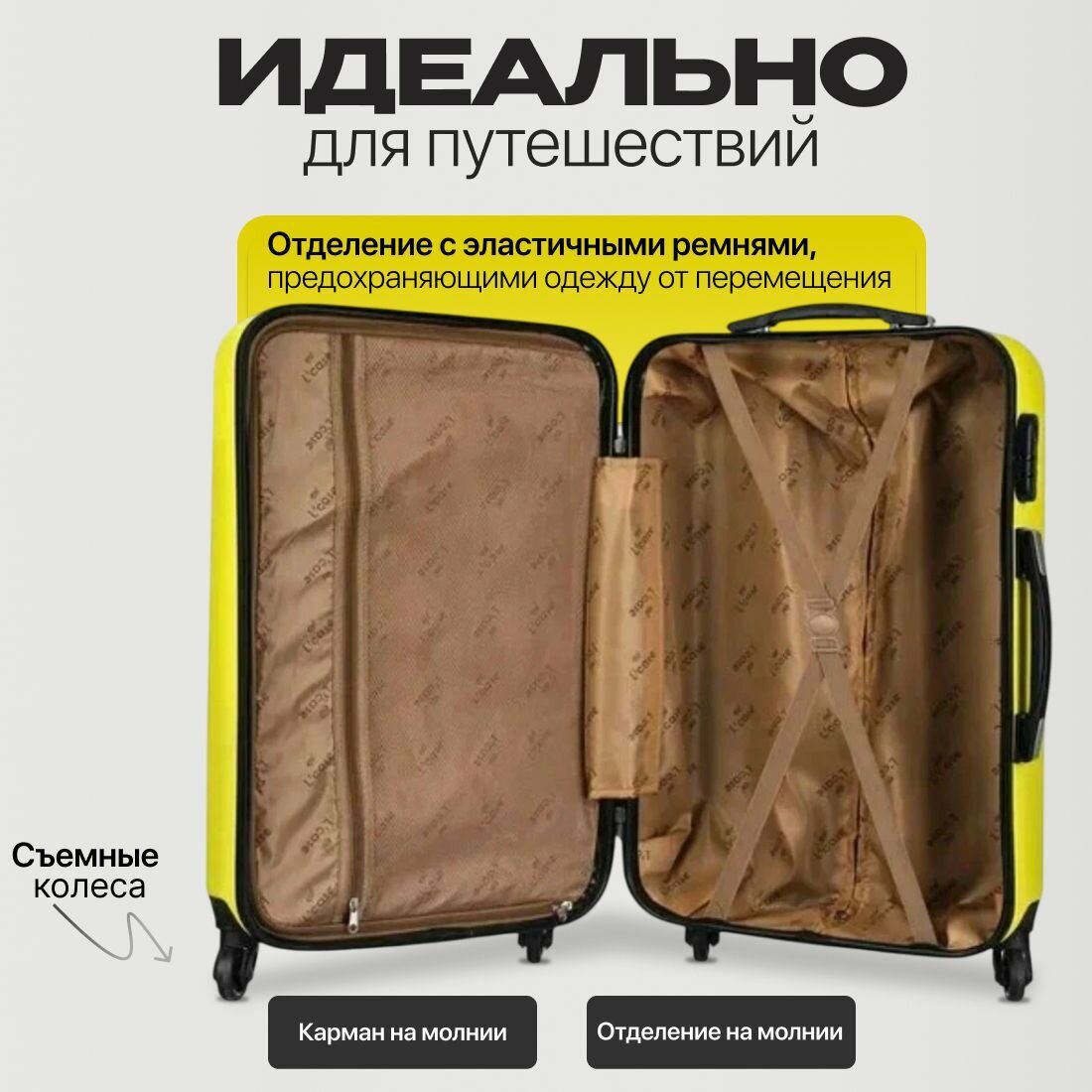 Комплект чемоданов L'case, 134 л, размер XXL, желтый информация: