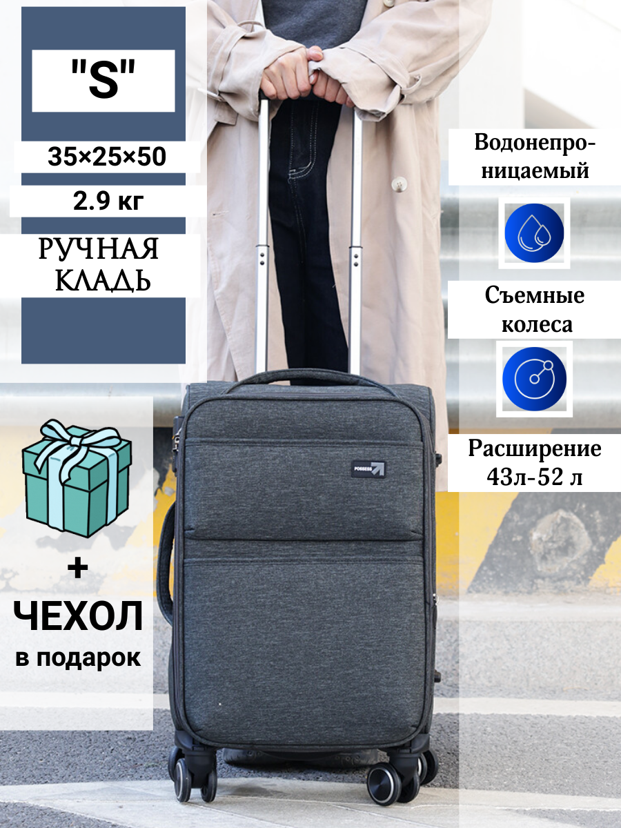 Чемодан POSSESS, 43 л, размер S, серый информация: