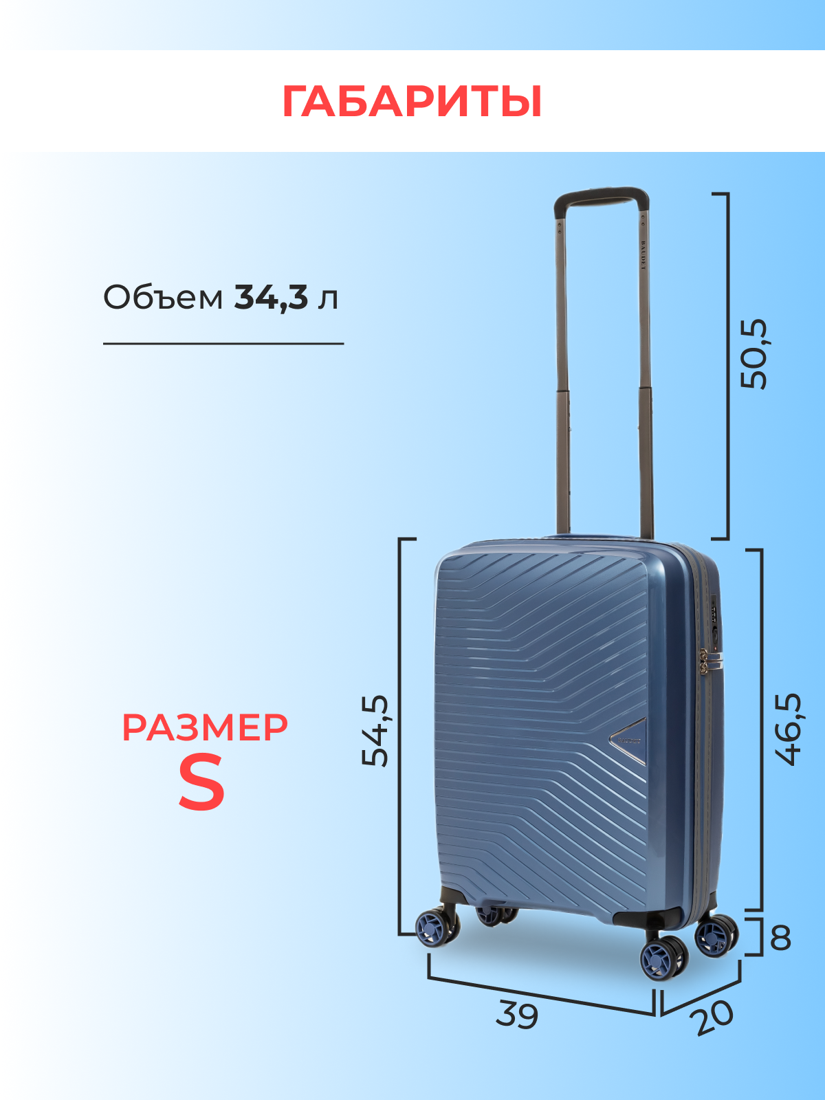 Чемодан BAUDET, 34.3 л, размер S, синий, черный информация: