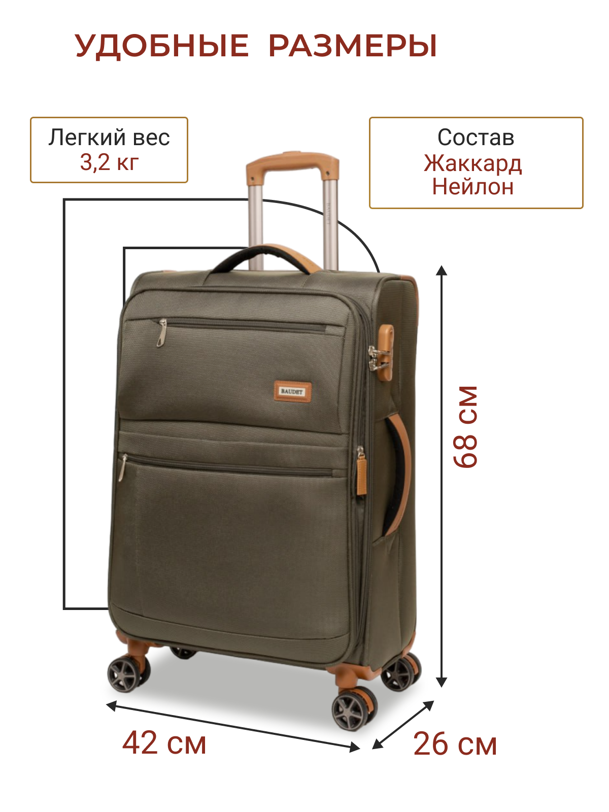 Чемодан BAUDET, 67 л, размер M, зеленый, хаки, коричневый информация:
