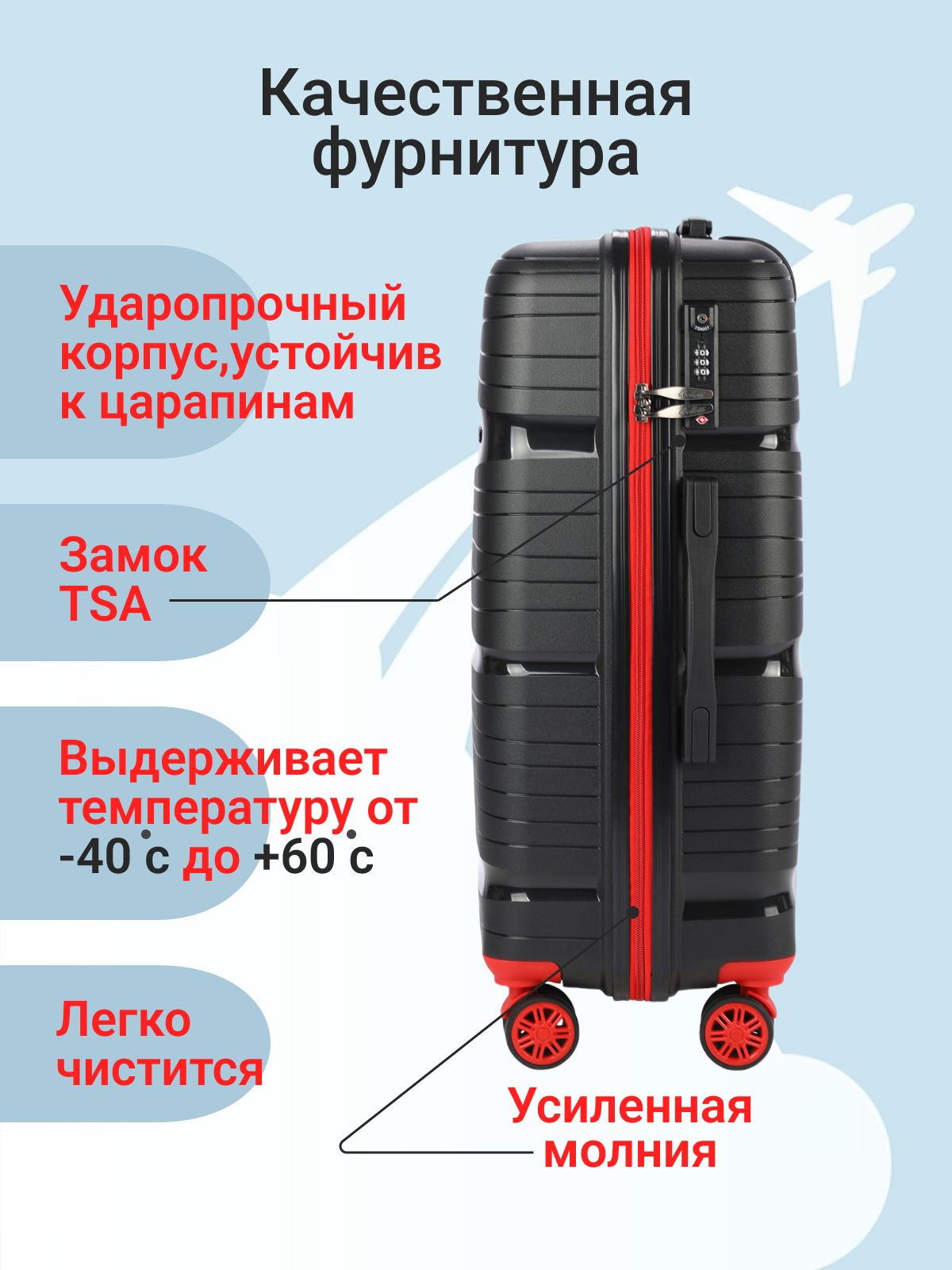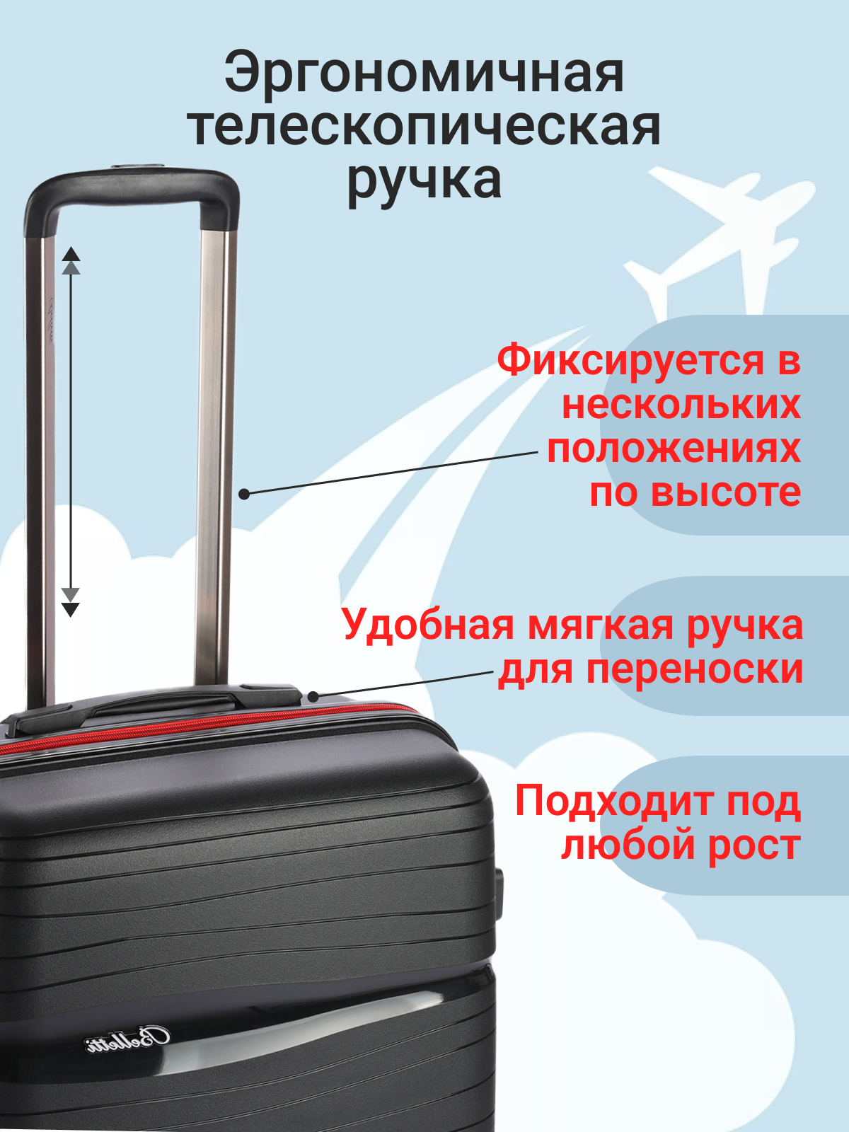 Чемодан Belletti, 61.9 л, размер M, черный/красный информация: