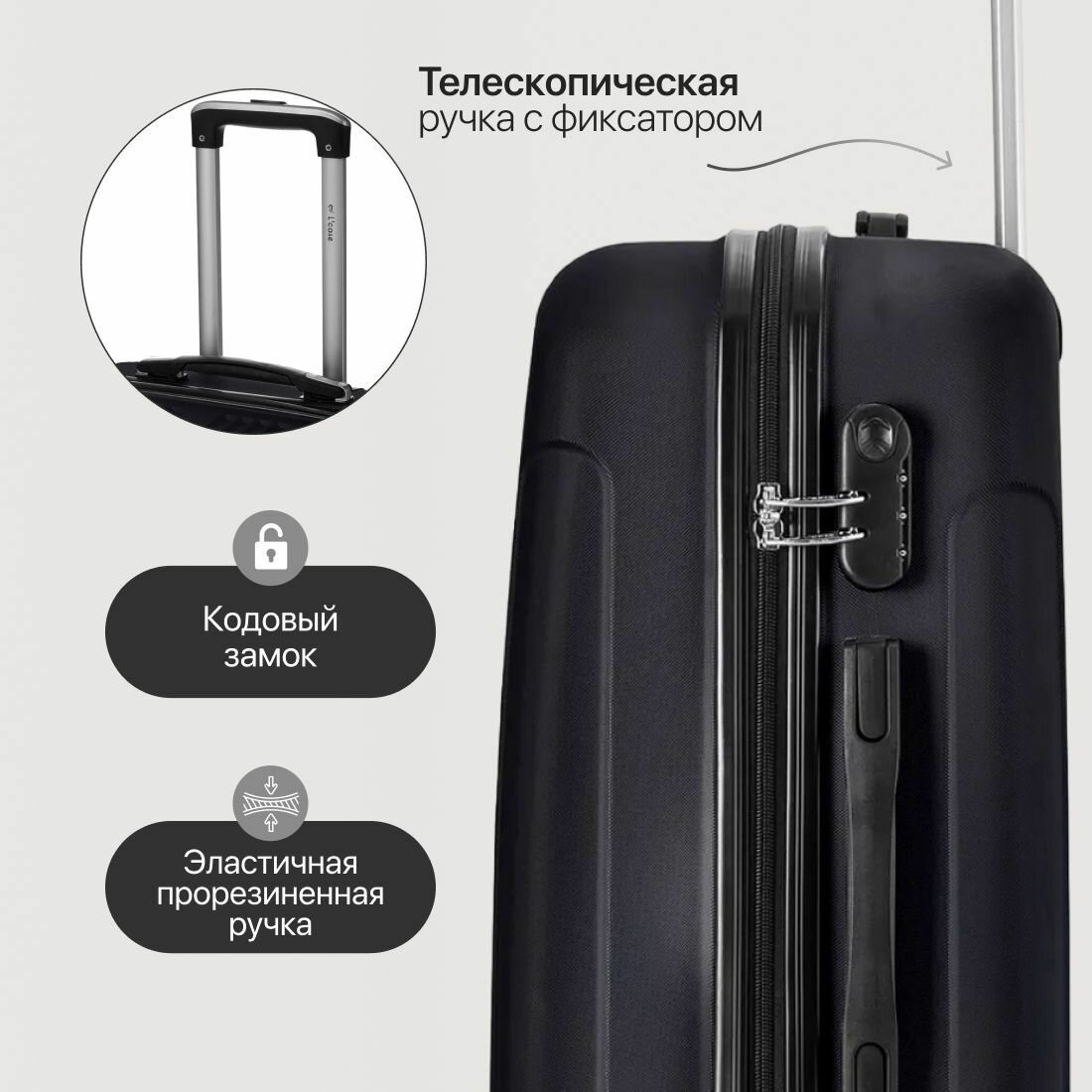 Чемодан L'case, 46 л, размер S+, черный 4 914 ₽