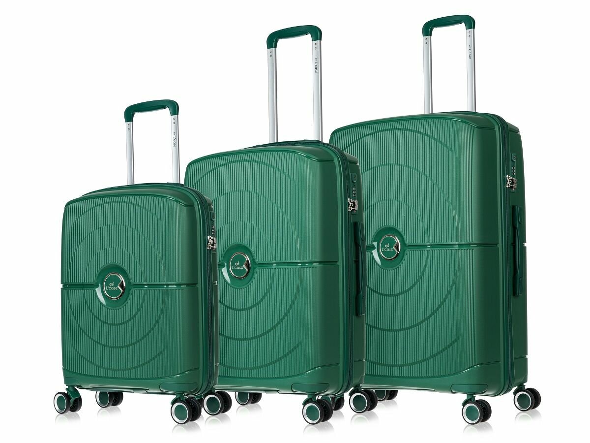 Комплект чемоданов L'case Doha, 112 л, размер XXL, темно-зеленый информация:
