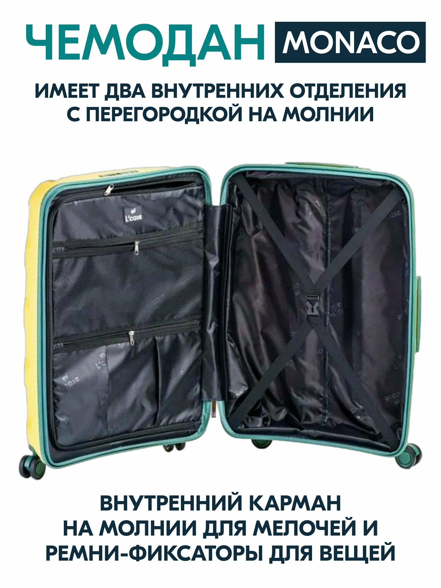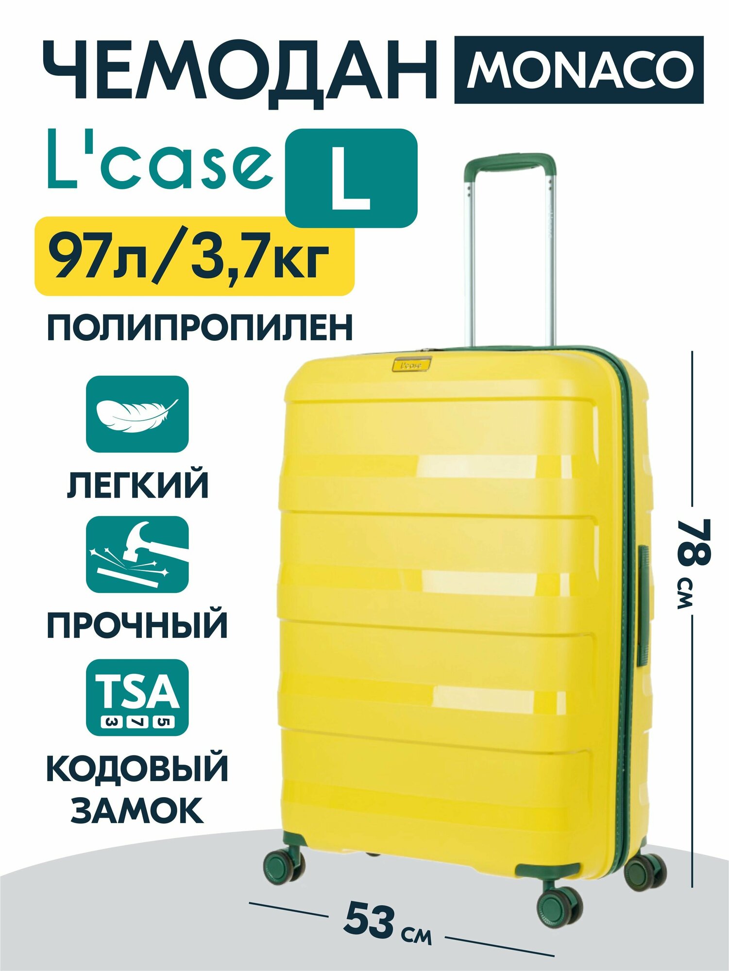 Чемодан L'case Monaco, 97 л, размер L, желтый информация: